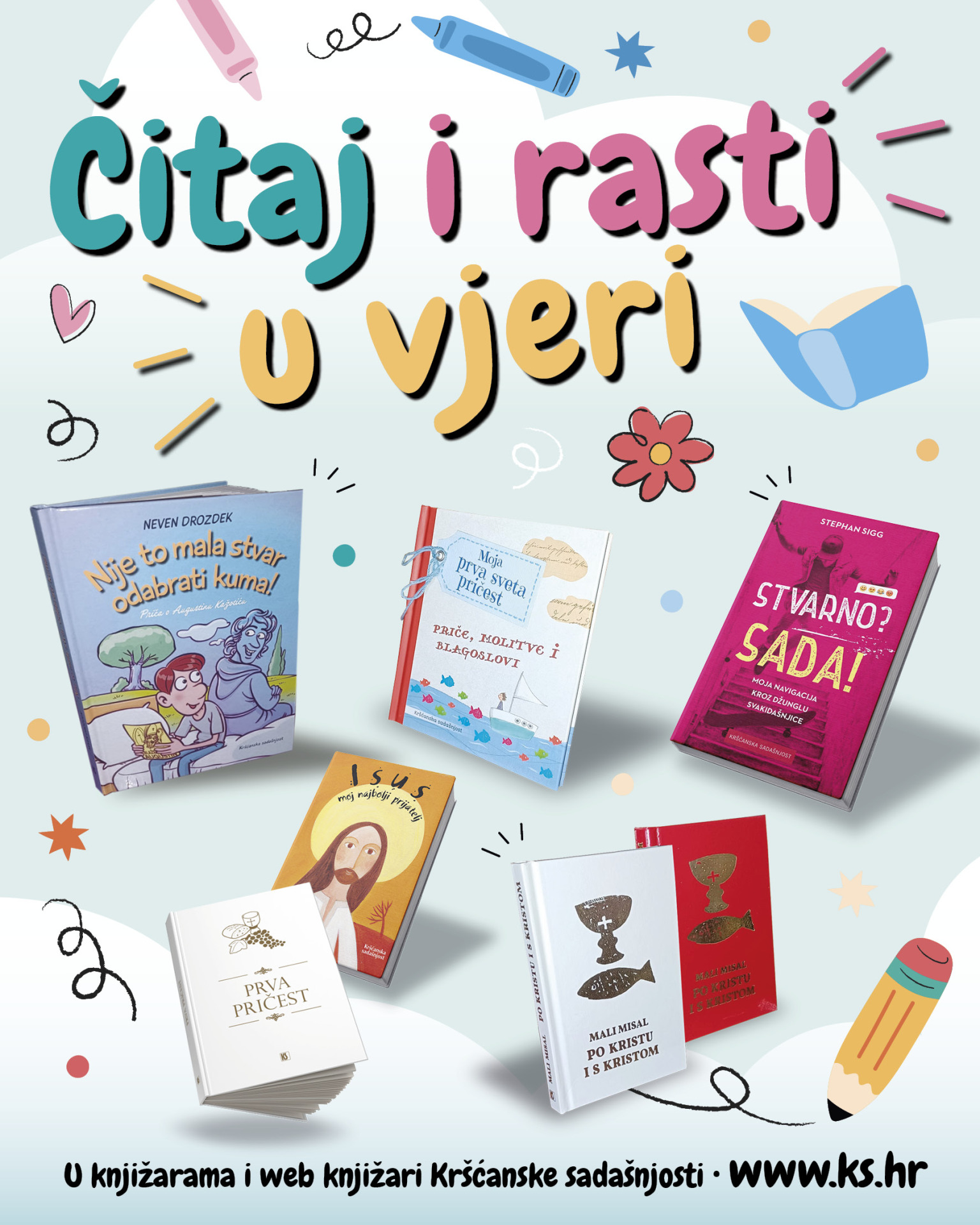 PONUDA KRŠĆANSKE SADAŠNJOST Čitaj i rasti u vjeri: Dar koji traje – knjige za prvu pričest i krizmu U moru potencijalnih darova, često zaboravimo na ono najvažnije – dar koji govori srcu i duši. Knjiga, osobito ona nadahnuta vjerom, više je od poklona. Ona može biti tihi suputnik, oslonac u pitanjima i izazovima, izvor svjetla i mudrosti u svakidašnjici. Bitno.net Podijeli: Foto: KS Prva sveta pričest i sveta potvrda (krizma) duboko su značajni trenutci na duhovnom putu mladih vjernika. To su sakramenti koji označavaju rast u vjeri, pripadnost Crkvi i korake prema zrelijem kršćanskom životu. U tim trenutcima, osim svečane pripreme i okupljanja obitelji, često se postavlja i pitanje – što darovati? U moru potencijalnih darova, često zaboravimo na ono najvažnije – dar koji govori srcu i duši. Knjiga, osobito ona nadahnuta vjerom, više je od poklona. Ona može biti tihi suputnik, oslonac u pitanjima i izazovima, izvor svjetla i mudrosti u svakidašnjici. Kršćanska sadašnjost zato je i ove godine pripremila posebnu ponudu Čitaj i rasti u vjeri u okviru koje se od 2. do 31. svibnja u svim knjižarama i web knjižari Kršćanske sadašnjosti mogu pronaći prigodne knjige, molitvenici, albumi i preklopnici za prvu svetu pričest i krizmu uz popuste od 20 % do 30 %. Ponuda uključuje izdanja koja: na pristupačan način približavaju Sveto pismo djeci i mladima potiču na razmišljanje, molitvu i osobni odnos s Bogom svjedoče o ljepoti kršćanske vjere i pozivaju na autentičan život u duhu vjere. Ilustrirana Biblija mladih, molitvenici i albumi, prigodni tekstovi uz sakramente – sve to može postati dar, ne samo za dan sakramenta nego mnogo trajniji. Prigodna izdanja za prvopričesnike Među izdanjima Kršćanske sadašnjosti mogu se pronaći i prigodni darovi za prvopričesnike, koji će im pomoći da rastu u vjeri i čuvaju uspomene na sveti trenutak susreta s euharistijskim Isusom. Od novih izdanja tu je album Uspomene na prvu svetu pričest koji sadržava birane molitve i misli koje će pomoći djeci da dublje razumiju važnost sakramenta. Grafički je vrlo privlačan, obogaćen toplim, dječjim ilustracijama i živim bojama koje pozivaju na listanje i ispunjavanje, lijepljenje fotografija… Tu je i knjižica Isus, moj najbolji prijatelj/Prva pričest u dva različita uveza – mekom šarenom te tvrdom svečanom. Ova predivno ilustrirana knjižica pravi je mali priručnik vjere za prvopričesnike, osmišljen kao suputnik koji će ih slikama i riječima pratiti i poučavati sve do krizme. Ovu sadržajem bogatu i raznovrsnu knjižicu uredio je Imerio Moscardo, a razigrano i privlačno ilustrirala Nicoletta Bertelle. Danas sam susreo Isusa. Živjeti svoju prvu pričest knjiga je koja prati djecu na jednostavan, ali osmišljen način u završnoj dionici njihova putovanja pripreme za sakrament euharistije, a i dalje, prateći ih i u narednom razdoblju. Ilustrirana je to knjiga puna aktivnosti: djecu potiče na razmišljanje i pisanje jednostavnih osobnih molitava, čuvanje fotografija s njihove prve pričesti, promišljanju o ljepoti stvaranja. Moja prva sveta pričest bit će odličan poklon, priručnik i uspomena za prvopričesnike, uz mnoštvo molitava, poučnih priča, zgoda i primjera iz života koji se mogu pronaći u ovoj knjižici. Album moje prve svete pričesti oslikana je knjiga u koju prvopričesnici upisuju najvažnije događaje, uspomene i osobe u svojem vjerskom odrastanju, lijepe fotografije, mogu se kreativno izražavati ispisujući molitve, misli i osjećaje ili opisujući poticajna događanja. Prvopričesnici mogu bolje upoznati Božju riječ čitajući Moju prvopričesničku Bibliju, u kojoj je donesen izbor iz najvažnijih biblijskih knjiga, dakako prepričan i primjereno ilustriran. Tu su i Mali misal. Po Kristu i s Kristom te preklopnik Moje prvopričesničke molitve uz koje će se prvopričesnici moći podsjetiti na osnovne molitve te molitve prije i poslije prve svete pričesti. Cijelu ponudu s popustom potražite u rubrici Akcije, a otale prigodne knjige putem tražilice u web knjižari Kršćanske sadašnjosti (biblioteke Kana klub i Izvan nizova). Foto: KSFoto: KSFoto: KS Prigodna izdanja za krizmanike Među naslovima Kršćanske sadašnjosti potražite prikladan dar za svoje krizmanike – neka im bude pratitelj i pomoć da rastu u vjeri i čuvaju uspomene na sveti trenutak susreta s euharistijskim Isusom. Krizmanici trebaju kuma ili kumu, a često ga ili ju nije lako odabrati. Zanimljivu priču o jednom kumstvu donosi posebna knjiga Nevena Drozdeka Nije to mala stvar odabrati kuma! Priča o Augustinu Kažotiću. Krizmanik Marko s osobitom je pažnjom izvadio letak na kojemu je devetnica blaženomu Augustinu Kažotiću i počeo taj letak proučavati. Još iste večeri dao se u moljenje devetnice s nakanom da mu blaženi Augustin pomogne pronaći dobroga kuma. Knjiga nas vodi kroz devet dana u kojima su ukratko predočene faze u Augustinovu životu: prvi dan: Augustinovo djetinjstvo; drugi dan: Augustinova mladost; treći dan: Augustin apostol, i tako dalje. Pratimo dogodovštine dječaka Marka i njegovo upadanje u neprilike iz kojih ga izbavlja vjerni mu prijatelj blaženi Augustin. Vjerujete li vi u Boga, gospodine biskupe? odgovara na stvarna pitanja koja su mladi ljudi tijekom 30 godina postavljali svome biskupu Krätzlu – koji je dugi niz godina bio tzv. „školski biskup“ u Austriji – na koja on odgovara smireno, otvoreno i s velikim uvažavanjem. Frcanje iskri knjiga je popularnog autora za mlade Stephana Sigga. Uz vrlo konkretne i praktične upute i pouke, u knjizi će mladi ljudi naći pregršt vrlo korisnih savjeta kako osvijestiti svoju krizmu, kako razumjeti svoje mjesto u Crkvi i društvu i kako razvijati darove Duha. Autor te darove naziva „sedam vatrenih tema za tvoj život“. Ova će knjiga, uz onu Što ti želim za krizmu (vedra, mladenačka, ohrabrujuća i bogato ilustrirana knjiga za krizmanike) i 