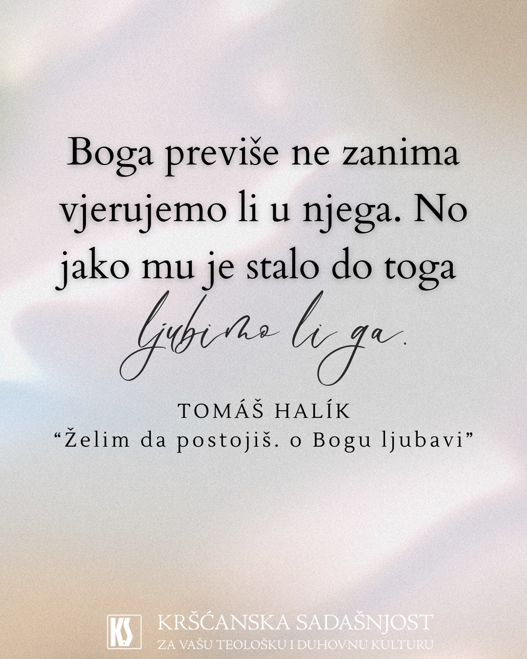 Njegova teološka vizija nije apstraktna niti udaljena – ona nas izaziva da se suočimo s pitanjem: kako razumijemo te biblijske rečenice o ljubavi koje često čujemo, ali rijetko doista doživimo (»Bog je ljubav.«, »Ljubi Boga svim srcem svojim.«, »Bog je ljubio svijet.«, »Ljubite svoje neprijatelje.«)? Kako te rečenice mogu odgovoriti na naša svakodnevna iskustva, na našu svakodnevnu potragu za smislom u svijetu koji sve više ne razumije Boga? Halík nas poziva da ne izbjegavamo sumnje, nego da ih prihvatimo kao dio vlastitog putovanja prema dubljoj istini.