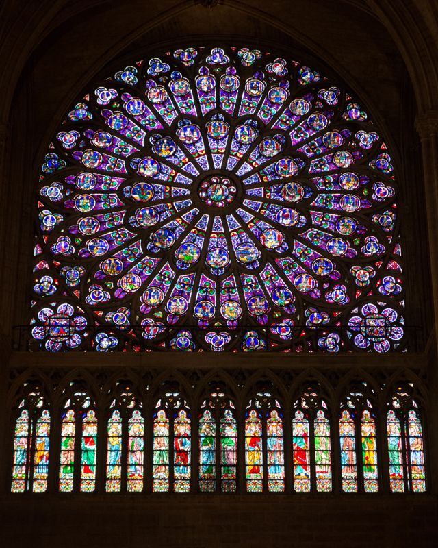 Gradnja veličanstvene pariške katedrale započela je u 12., a dovršena u 14. stoljeću. Nažalost, mnogi njezini vitraji, kao i druga umjetnička djela u samoj katedrali, uništeni su tijekom povijesti. Preživjele su jedino prekrasne rozete, među kojima se starošću ističe sjeverna rozeta prikazana na fotografiji, dok su zapadna i južna rozeta doživjeli manje obnove.