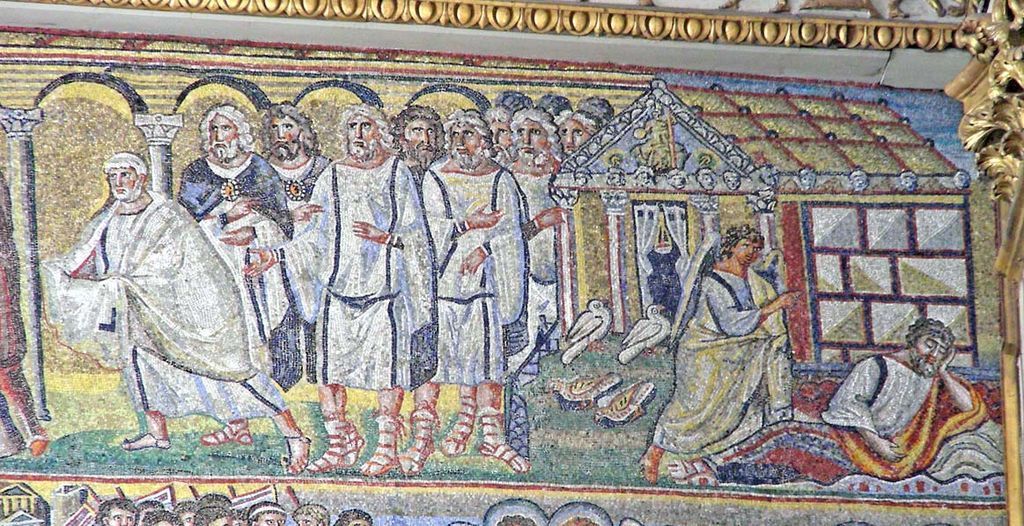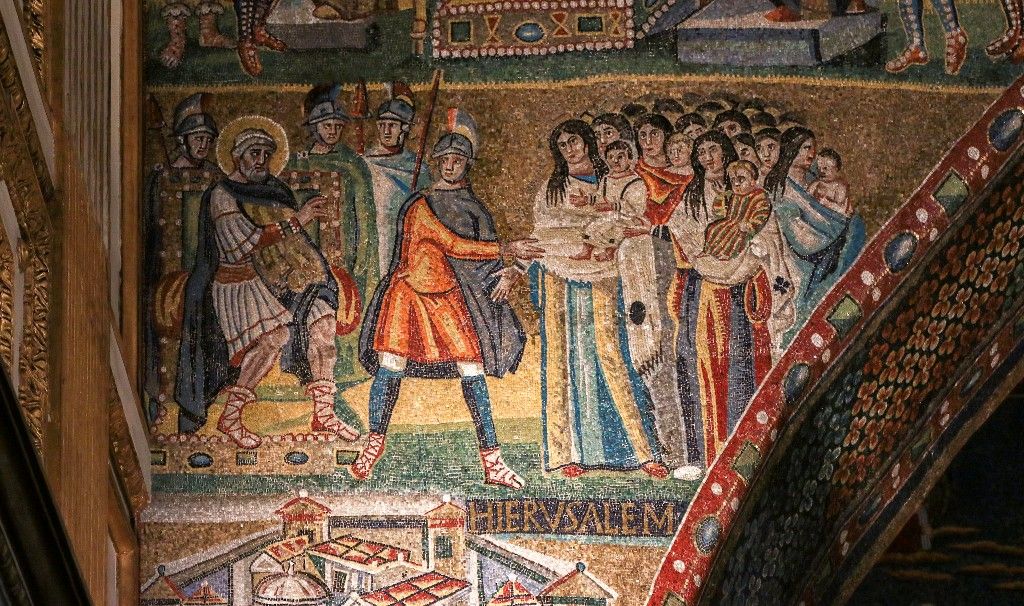 Dok su mozaici koji se nalaze u pobočnim lađama usredotočeni na priče o patrijarsima (Abrahamu, Izaku, Jakovu, Mojsiju, Jošui) koje su obuhvaćene na 21 prikazu sa svake strane, ono što je tada predstavljalo apsidalni luk bilo je zamišljeno kako bi se navijestilo otajstvo utjelovljenja i objave narodima Gospodina Isusa, pravoga Boga i pravog Čovjeka.
