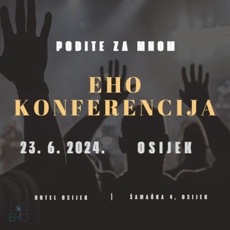 23. LIPNJA Eho konferencija prvi put stiže u Osijek Kako preživjeti duhovnu pustinju? Kako izaći na kraj s kušnjama i teškoćama života u vjeri? Kako proći kroz krize vjere i služenja Bogu? Što kada mislim da više ne mogu i kada je jednostavno preteško? Kako mogu služiti Bogu kroz slavljenje? Što zapravo Bog želi od mene? Odgovore na ova i mnoga druga pitanja čut ćeš 23. lipnja u Osijeku na Eho konferenciji! Slijedi priopćenje Bitno.net Podijeli: “Upravo o teškoćama, izazovima i kušnjama poziva govorit će nam predavači na Eho konferenciji u Osijeku. Pater Boris Jozić, Matej Galić, don Filip Pavlović i voditelj molitvene zajednice Eho Marko Matijašević podijelit će s nama svoje iskustvo poziva i odgovora ‘DA!’. Dođi na ovu veliku duhovnu obnovu, jer osim odličnih predavanja očekuje te i moćno slavljenje uz slavljenički tim Eho (poslušaj pjesmu Aleluja), kao i sveta misa u konkatedrali u Osijeku te zajednička i pojedinačna molitva na kraju programa. Tema ove duhovne obnove bit će ‘Pođite za mnom!’. To je poziv koji je Isus prije gotovo 2000 godina uputio mladim ribarima, a danas ga upućuje tebi. Oni su od ribara postali apostoli i promijenili svijet jer su bili spremni ostaviti sve i poći za njim. Što ćeš ti postati? Jesi li spreman/spremna ostaviti sve i predati svoj život Gospodinu? Kada Boga stavimo na prvo mjesto, onda je sve na pravom mjestu. Tu rečenicu smo čuli već mnogo puta, ali jesmo li ju zaista čuli? Isus nam je obećao mnoge blagoslove ako krenemo za njim, ali nije sakrio ni da ćemo proći kroz mnoge kušnje, neshvaćanja, optužbe, teškoće… baš kao što su prolazili i on i apostoli. Nije lako biti vjernik. Nije lako biti Isusov učenik. Obećani su nam blagoslovi, ali i progoni. Zato se moramo držati zajedno, zato se moramo okupljati, ohrabrivati, puniti novom vatrom i riječju Božjom, biti u zajedništvu… Zato dođi, duhovno se obnovi i osnaži za sve što je pred tobom – Bog te poziva! Prijaviti se možeš tako da ispuniš ovaj obrazac. Sažetak posljednje Eho konferencije u Zagrebu, koja je okupila oko 700 sudionika, možeš pogledati OVDJE.” Podijeli: