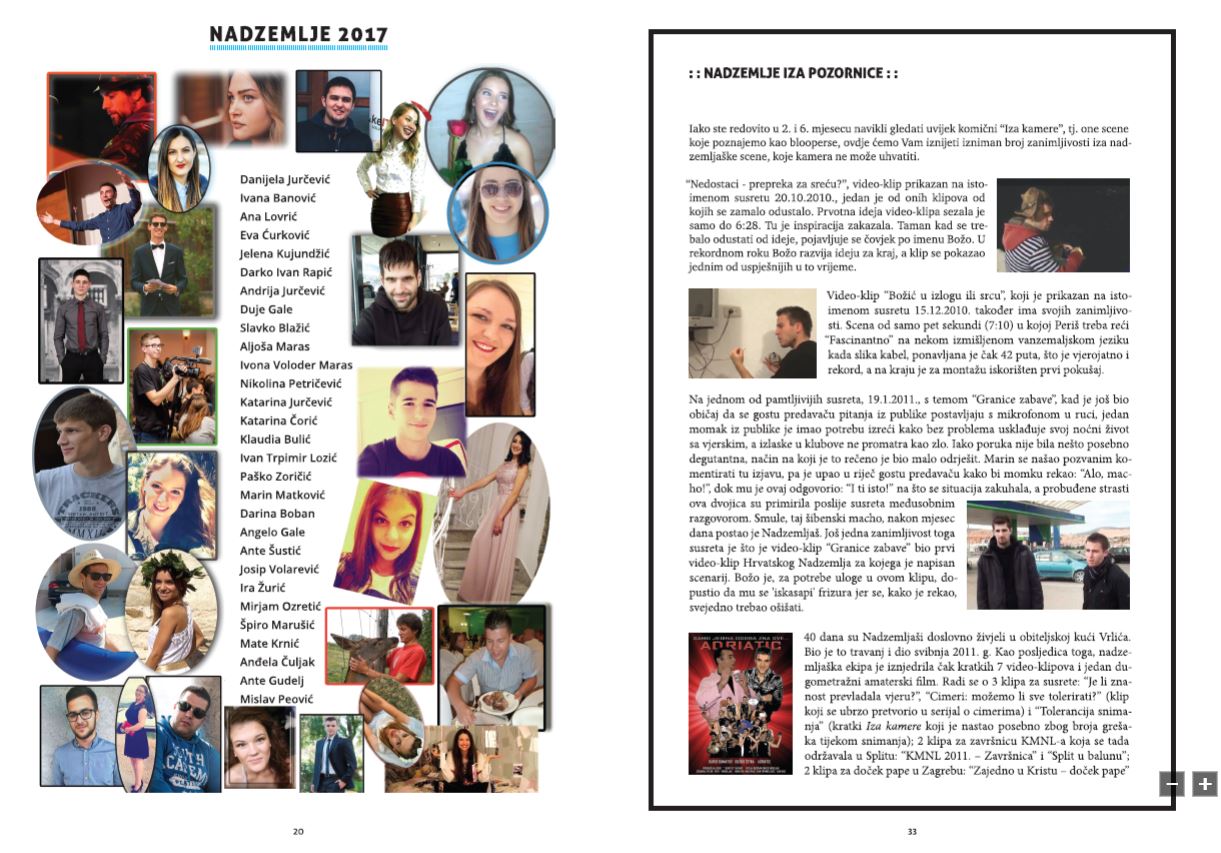 Sigurno ste već čuli za mlade iz Hrvatskog nadzemlja, kreativne i ambiciozne mlade iz Splitsko-makarske nadbiskupije koji sedam uzastopnih godina održavaju javne tribine za studente u splitskom Sjemeništu svake treće srijede u mjesecu, a uvijek iznova oduševljavaju sa svojim skečevima i filmovima. Ovoga puta ekipa Hrvatskog nadzemlja pokrenula je nešto novo, posve različito od onoga što smo navikli vidjeti i čuti. Naime, mladi Splićani u suradnji sa Splitsko-makarskom nadbiskupijom tiskat će svoj prvi enigmatski časopis: Nadzemaljac.