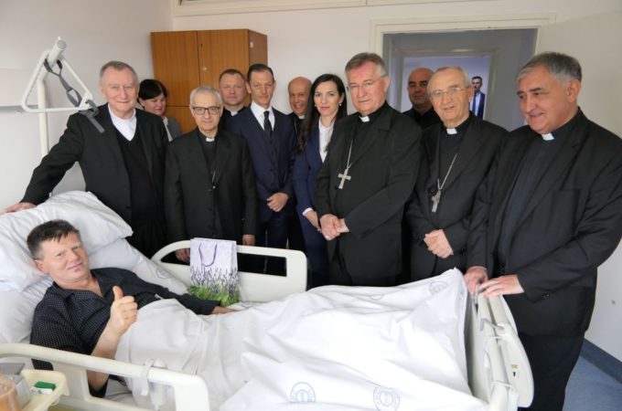 POSJET VATIKANSKE DELEGACIJE Vatikanski državni tajnik, kardinal Pietro Parolin, posjetio mons. Antu Jozića u splitskoj bolnici