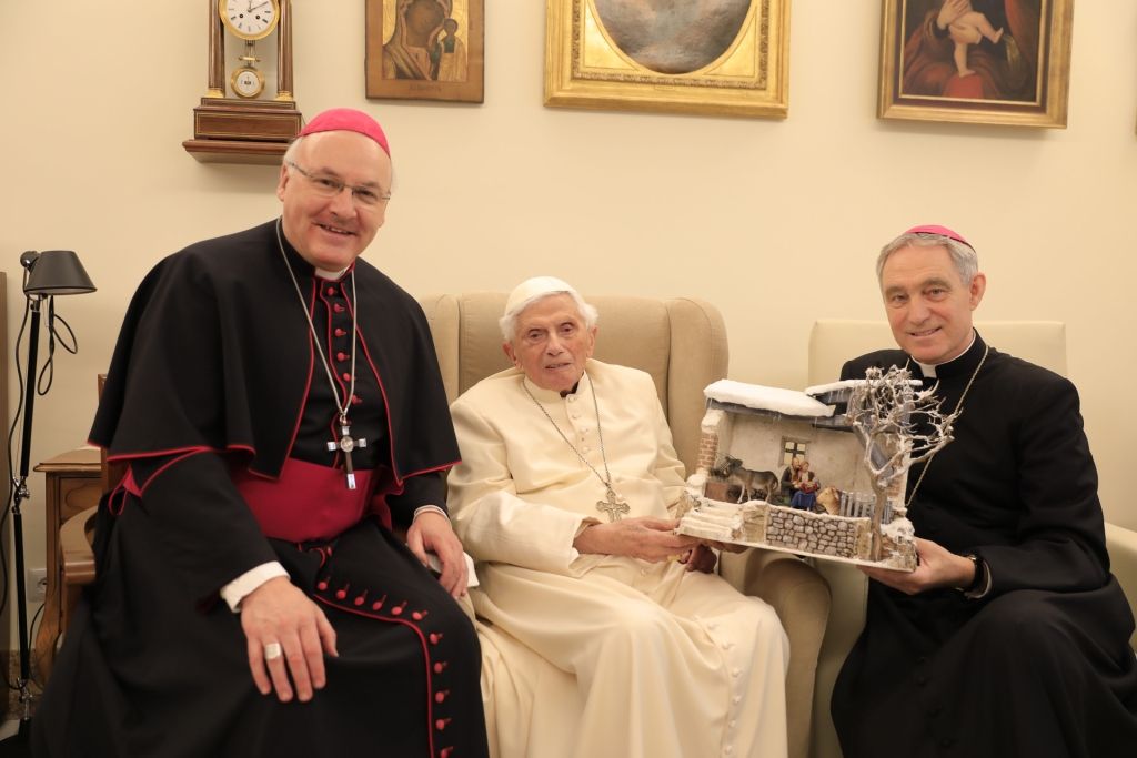 BOŽIĆNI DAR Regensburška biskupija objavila fotografije Benedikta XVI. kako na dar prima jedne posebne jaslice Vatikan | 10. prosinca 2021.