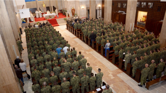 MISA NA SVETOM DUHU Impozantne fotografije – stotine muškaraca i žena u vojnim uniformama na misi uoči blagdana sv. Mihaela