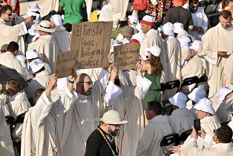 PRIZORI ZA PAMĆENJE FOTO Tisuće mladih u Lisabonu noć je provelo u parku, čekali su današnju misu s Papom Park Tejo, uz ušće istoimene rijeke, nakratko se sinoć pretvorio u golemu spavaonicu. Bitno.net Podijeli: Foto: JMJ 2023 Svjetski dan mladih donio nam je pregršt prekrasnih prizora. Nama su, naravno, najzanimljiviji bili oni s mladima iz Hrvatske (a bilo ih je) no na svim fotografijama, videozapisima i društvenim profilima mogla se vidjeti radost stotina tisuća mladih vjernika koji su na nekoliko dana Lisabon pretvorili u centar Katoličke Crkve. Vrhunac Svjetskog dana mladih bila su dva događaja, sinoćnje bdijenje i današnje euharistijsko slavlje s papom Franjom, oboje održano u parku Tejo, prostoru dovoljno velikom za miljiun i pol vjernika koji su, prema procjenama, prisustvovali. Kako je lokacija zadnje sinoćnje i prve današnje točke bila ista, tisuće mladih provelo je noć u parku, spavajući u vrećama. Prizori koje su ulovili fotografi Svjetskog dana mladih oduševili su nas. Foto: Sebastião Roxo \ JMJ 2023Foto: Duarte Nunes \ JMJ 2023Foto: Bruno Seabra \ JMJ 2023Foto: José Ferreira \ JMJ 2023Foto: © Júlia Silva \ JMJ 2023Foto: Jesus Huerta \ JMJ 2023Foto: Bárbara Vitória \ JMJ 2023 Podijeli: