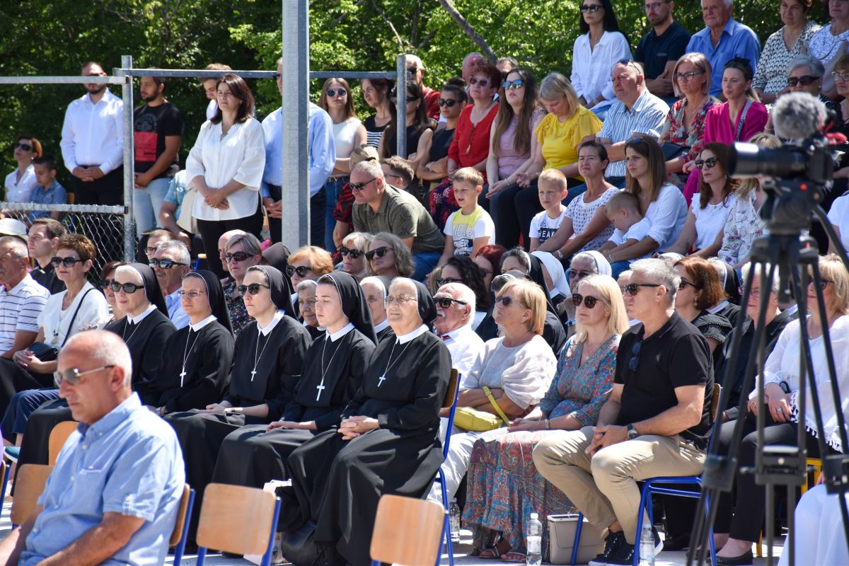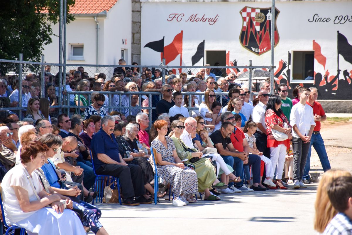Na školskom igralištu u Veliću, Župi svetog Ivana Krstitelja u Grabu, u nedjelju 2. srpnja 2023. godine tražilo se mjesto više na školskom igralištu, na tribinama podno hrastove hladovine za sve one koji su pristigli na slavlje Mlade mise dvojice rođene braće – fra Marka i don Renata Pudara.