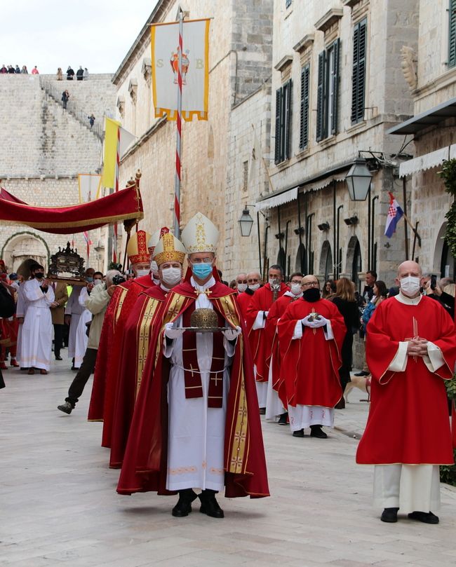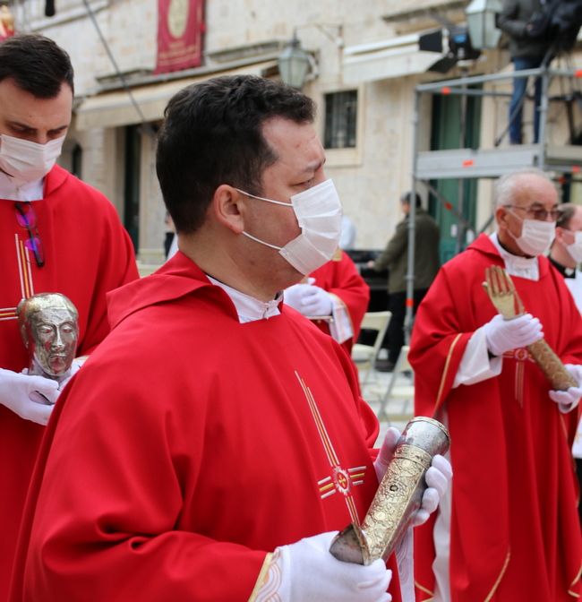 Relikvije glave sv. Vlaha nosili su nad/biskupi, a ostale relikvije sv. Vlaha i svetaca također su nošene u procesiji s tim da je ove godine vjernicima preporučeno da ih ne dodiruju i tako im iskazuju štovanje, a opet zbog epidemioloških razloga.