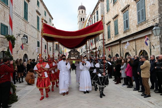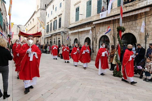 Svečana procesija nakon glavne mise na svetkovinu sv. Vlaha, dubrovačkog zaštitnika, i ove godine je išla svojim redovitim putem unutar zidina Dubrovnika, no zbog epidemioloških propisa mogao je sudjelovati manji broj vjernika. Nešto više od 90 barjaka bratovština i crkva iz raznih župa Dubrovačke biskupije učinilo je da se opet kroz Grad zavijore barjaci, a vjernici u narodnim nošnjama učinili su je ne samo šarolikom nego i svečanijom i prepoznatljivom, javlja Dubrovačka biskupija.