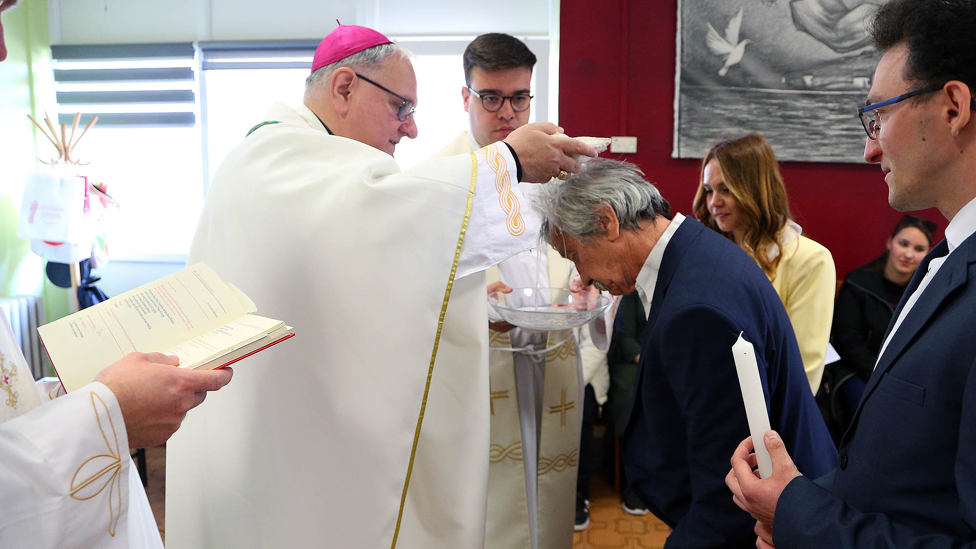 Tijekom slavlja biskup je štićeniku Cvjetnog doma Anti Marovu (78) podijelio sakramente krštenja, krizme i pričesti. Novokrštenika za sakramente pripremali su članovi katoličke karitativne i volonterske Udruge sv. Vinka Paulskog predvođeni duhovnom asistenticom s. Elizabetom Glasnović. U pripremi se posebno istaknula članica udruge Diana Radnić koja je novokršteniku bila i kuma.