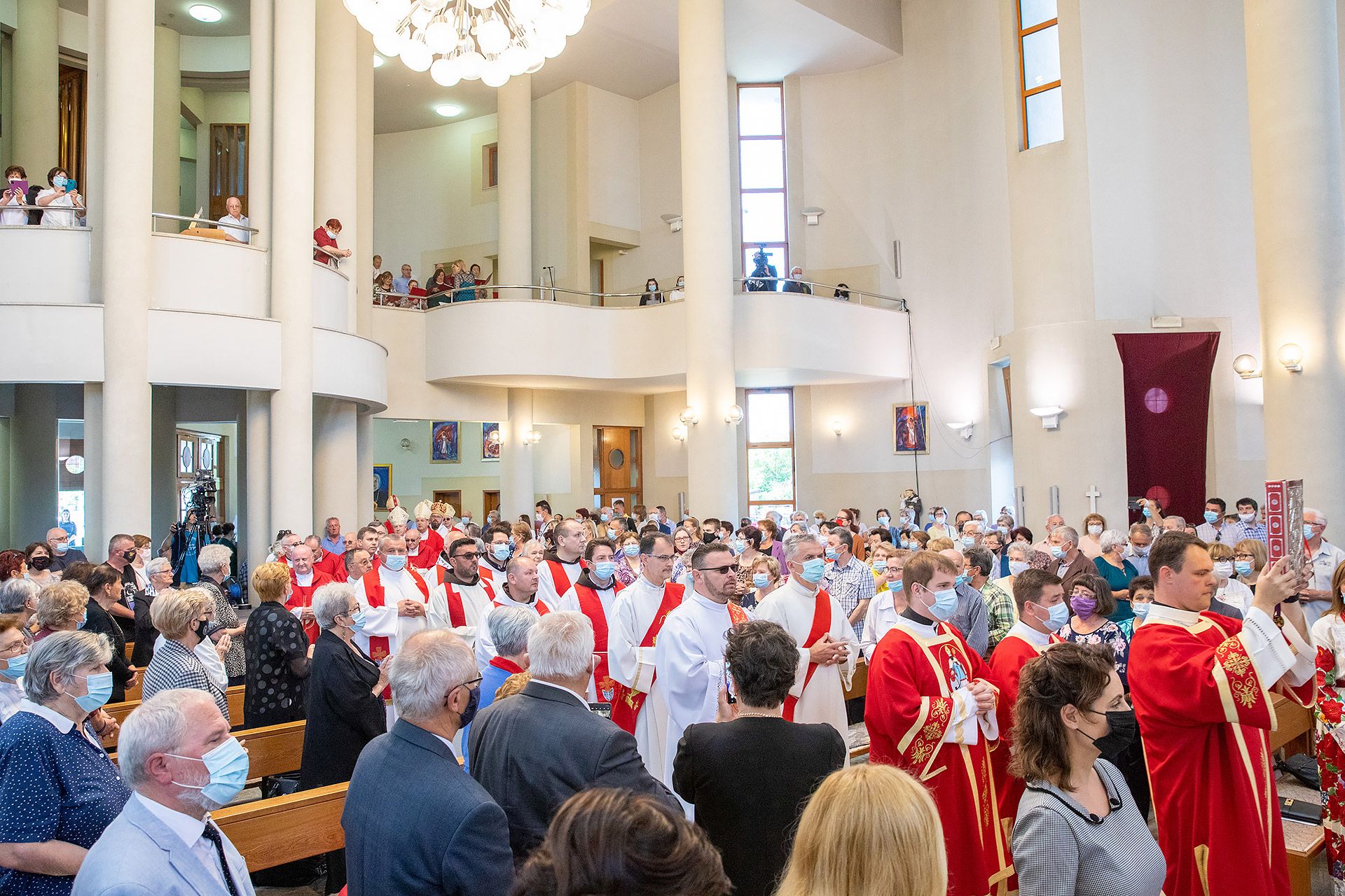 Svečano misno slavlje u bazilici Sv. Kvirina predvodio je szombathelski biskup János Székely u zajedništvu s domaćim biskupom Vladom Košićem, bjelovarsko-križevačkim biskupom Vjekoslavom Huzjakom, varaždinskim biskupom Božom Radošem, križevačkim vladikom Milanom Stipićem, zagrebačkim pomoćnim biskupima Mijom Gorskim i Ivanom Šaškom, rektorom bazilike preč. Robertom Jakicom i šezdesetak svećenika.