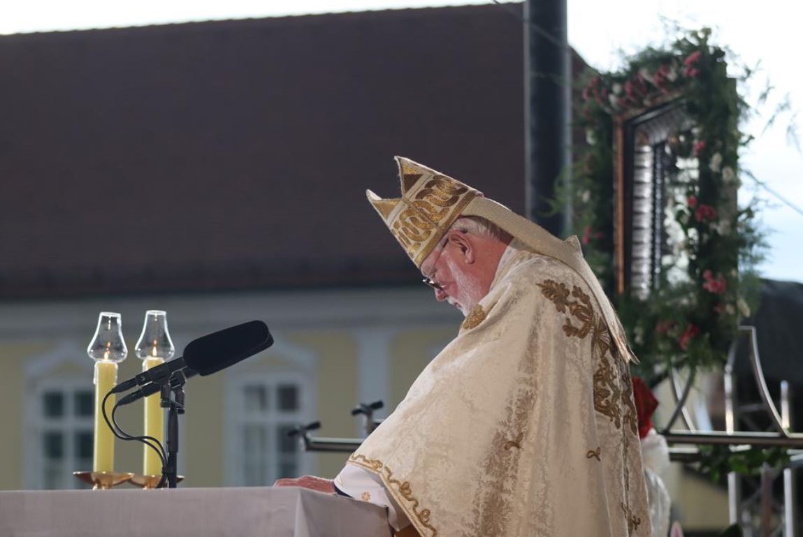 Pozdravio je predvoditelja slavlja mons. Gallaghera, kojem je u ime nazočnih biskupa, svećenika, đakona i Bogu posvećenih osoba te svega Božjeg naroda okupljenog na ovom slavlju darovan lik Majke Božje od Kamenitih vrata.