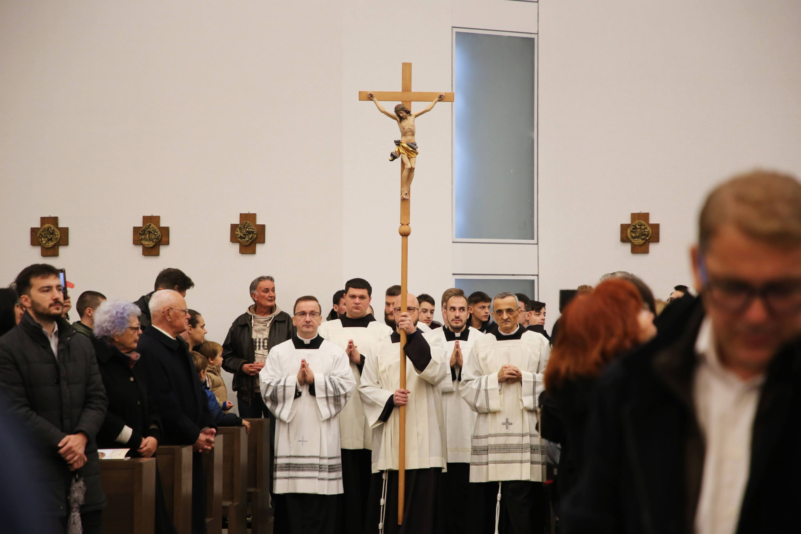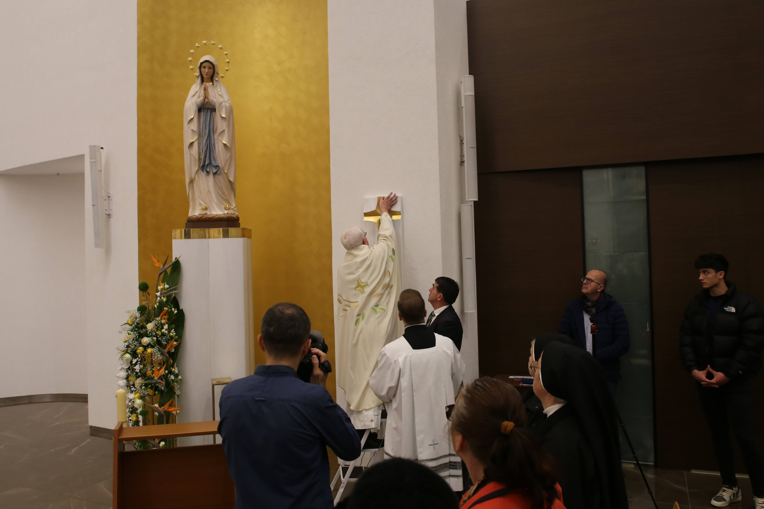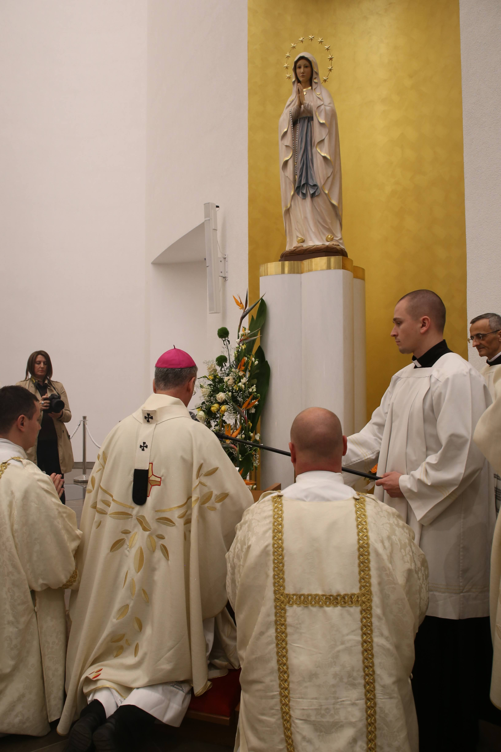 Na početku slavlja pozdrav je uputio gvardijan fra Bože Vuleta kazavši kako je ovaj crkveni objekt podignut 1970-ih godina u vrijeme hrvatskog proljeća, a „cjelovitim je uređenjem u zadnjih sedam godina doživio svoje proljeće. Već gotovo dvije godine župna zajednica Majke Božje Lurdske u ovoj crkvi slavi Boga i utječe se svojoj nebeskoj zaštitnici, a danas, činom posvećenja, ovaj će blagoslovljeni prostor postati, možemo slobodno reći, sakrament, tj. materijalni znak žive Crkve, svih nas koje Duh Sveti ujedinjuje u jedno Tijelo, kojem je glava Krist”.
