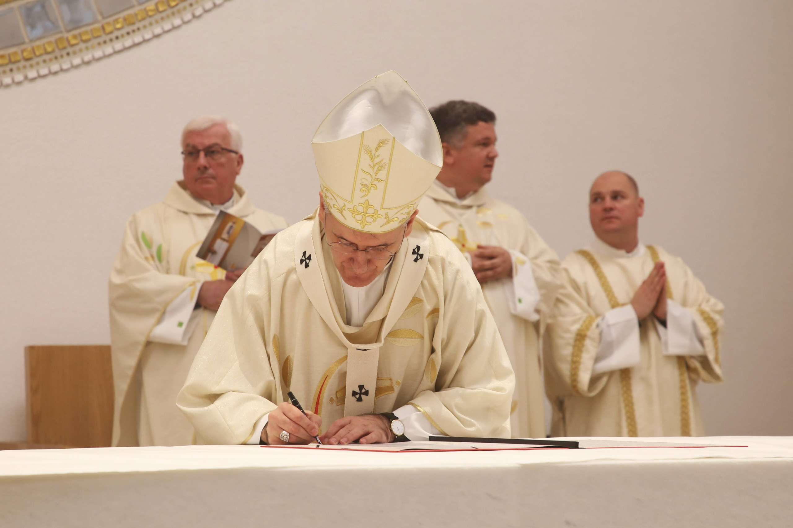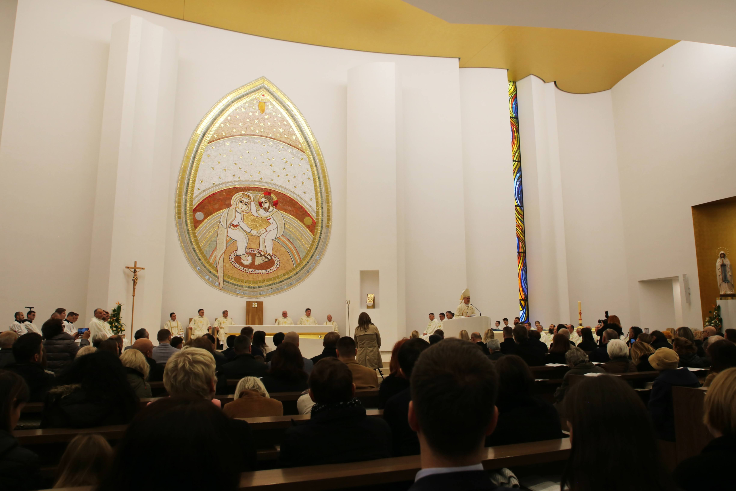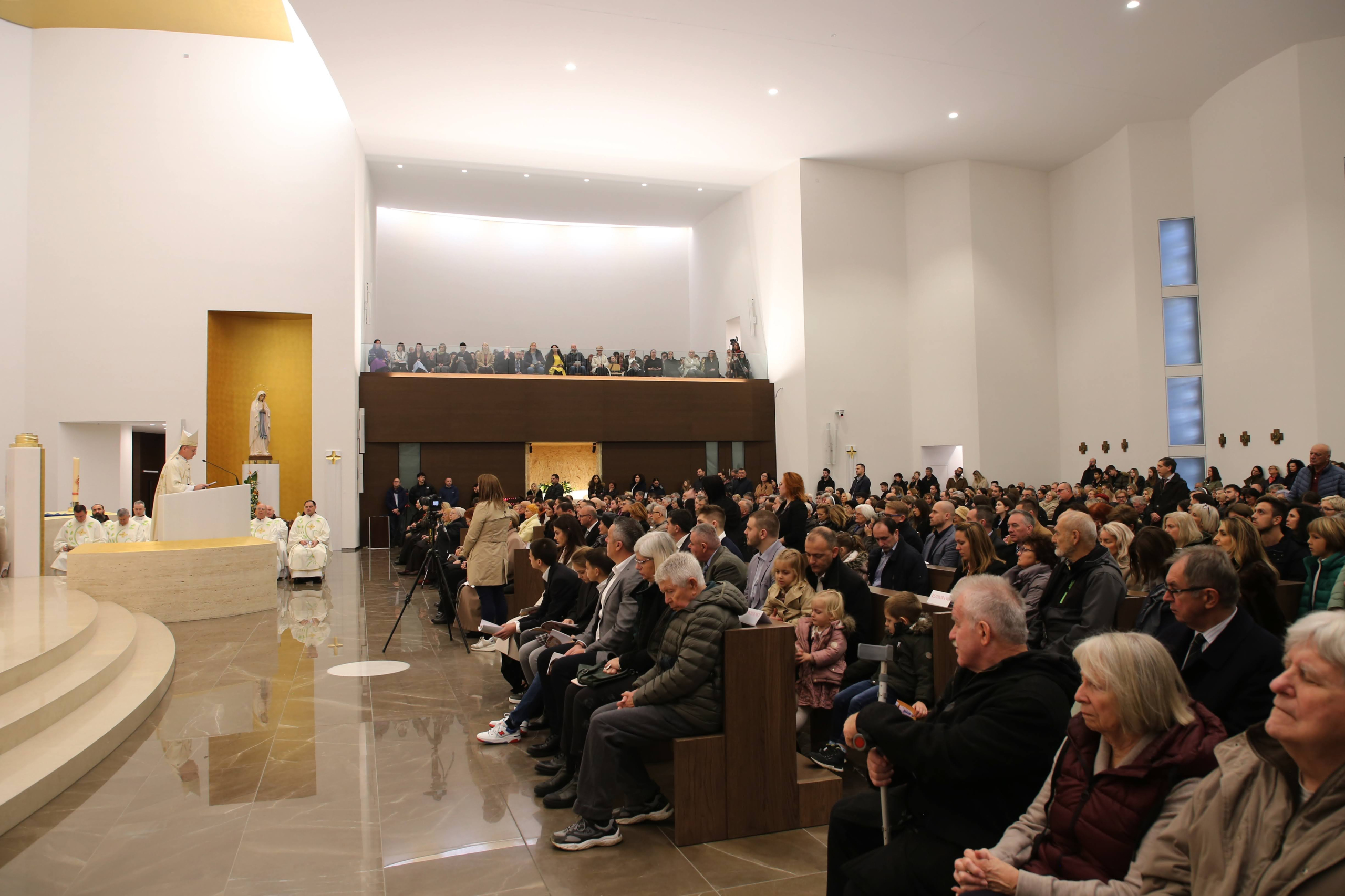 Na kraju homilije nadbiskup Kutleša kazao je kako je posveta crkve toga dana prilika „da posvijestimo kolike milosti primamo slaveći svakodnevno u ovom prostoru presvetu Isusovu žrtvu, žrtvu novoga i vječnoga saveza. Mi danas Bogu prinosimo zahvalnu pjesmu za blagoslove koje smo primili i posvećujemo ovaj dom molitve Njemu na slavu. Neka ovo bude mjesto gdje ćete svakodnevno prepoznavati svoju i Isusovu žeđ i odakle će teći rijeke milosti za ovaj grad, naše obitelji, Domovinu i cijeli svijet tako potreban Njega i zaštite Majke Božje”.