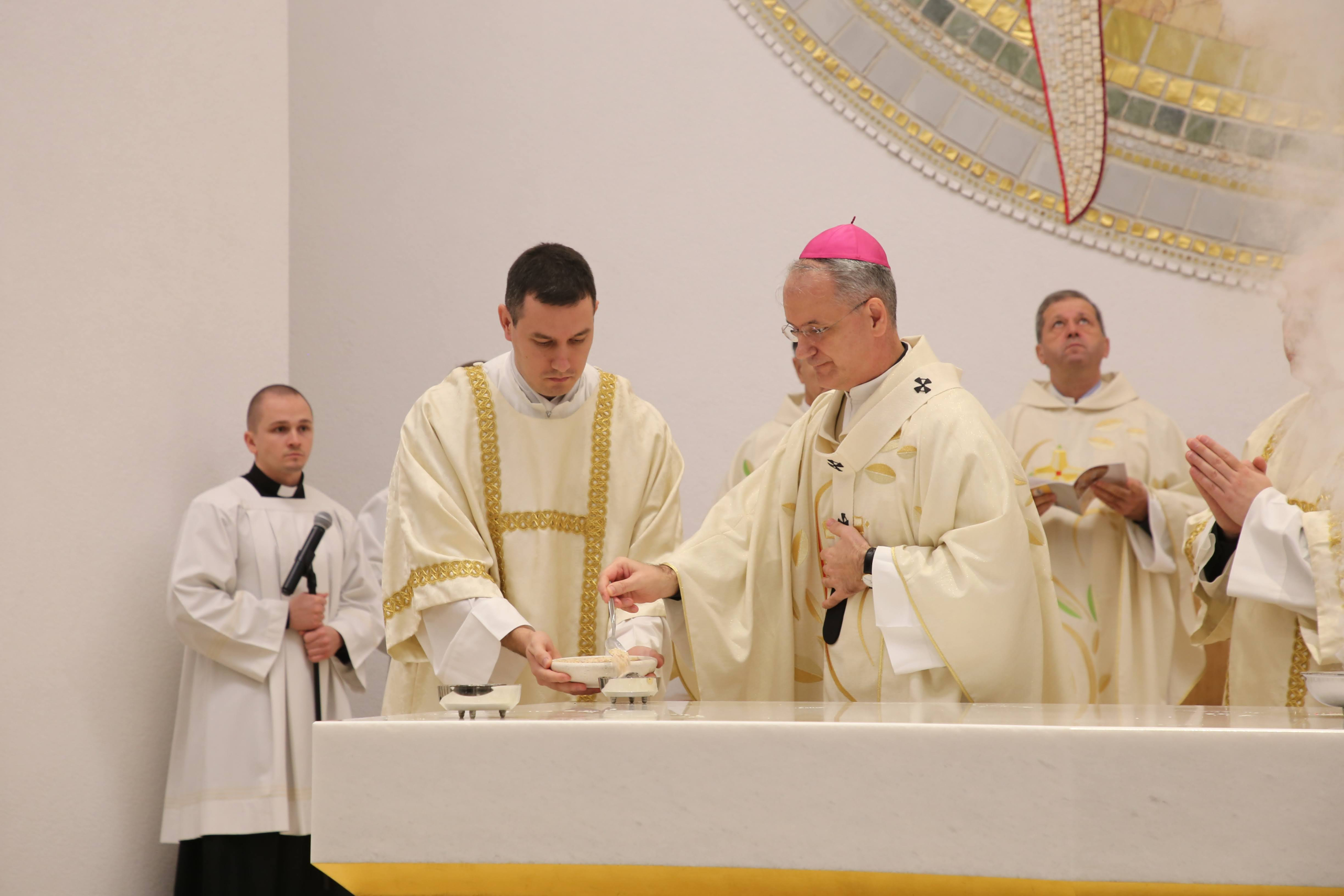 Nadbiskup Kutleša potom je blagoslovljenomvodom poškropio narod i oltar.