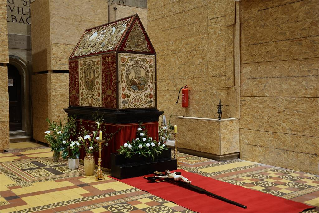 Zagrebački nadbiskup mons. Dražen Kutleša predvodio je na Veliki petak, 3. travnja, Službu Muke Gospodnje u Zagrebačkoj katedrali u zajedništvu sa zagrebačkim nadbiskupom u miru kardinalom Josipom Bozanićem, pomoćnim biskupima mons. Ivanom Šaškom, mons. Mijom Gorskim, mons. Vladom Razumom i mons. Markom Kovačem, kanonicima Prvostolnog kaptola zagrebačkog, prebendarima Prvostolne crkve zagrebačke, odgojiteljem u Nadbiskupskom bogoslovnom sjemeništu vlč. Josipom Đurinom te nadbiskupskim tajnikom vlč. Domagojem Topićem.