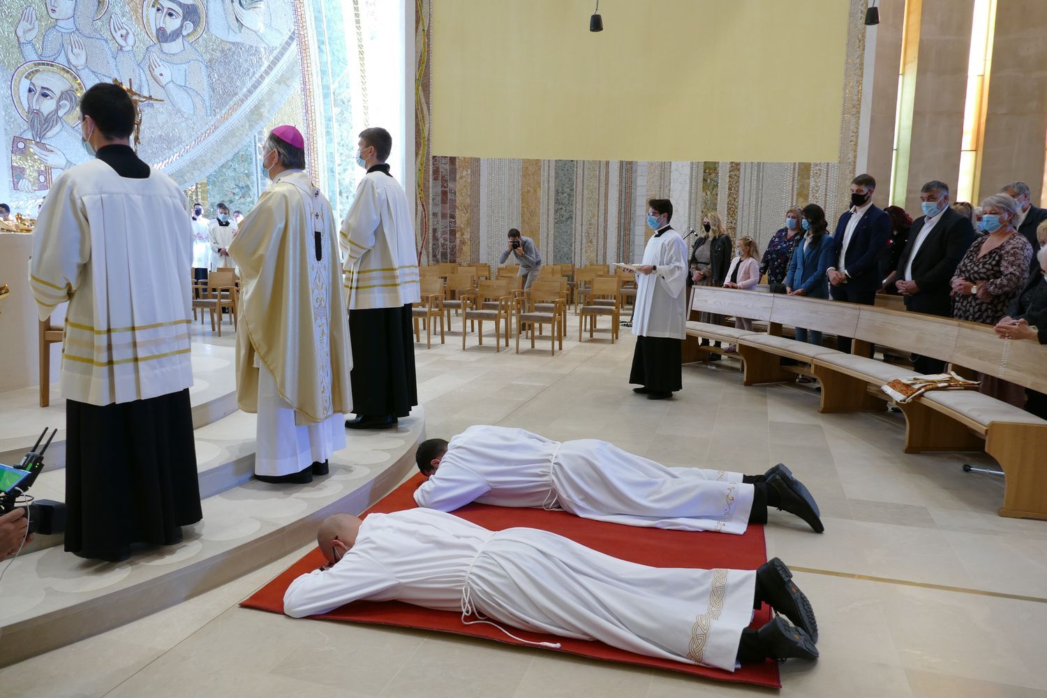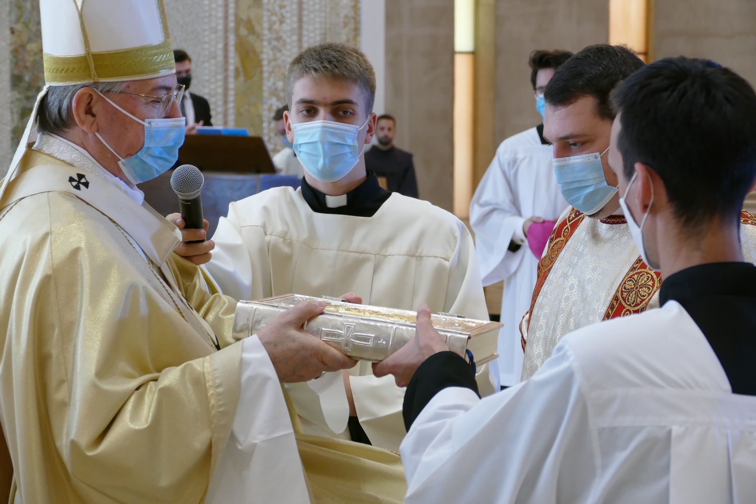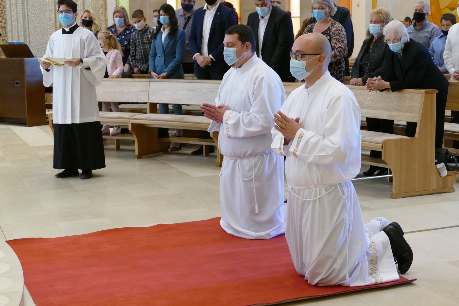 Nakon homilije nadbiskup Barišić je polaganjem ruku i posvetnom molitvom kandidatima podijelio sakrament svetoga reda đakonata. Potom su novozaređeni đakoni obukli službenu liturgijsku odjeću: štolu, koja je znak dostojanstva i vlasti, i dalmatiku, simbol spasenja, radosti i pravednosti. Na kraju obreda, đakoni su primili evanđelistar iz nadbiskupovih ruku te s njim izmijenili cjelov mira, a potom su pristupili služenju kod oltara.
