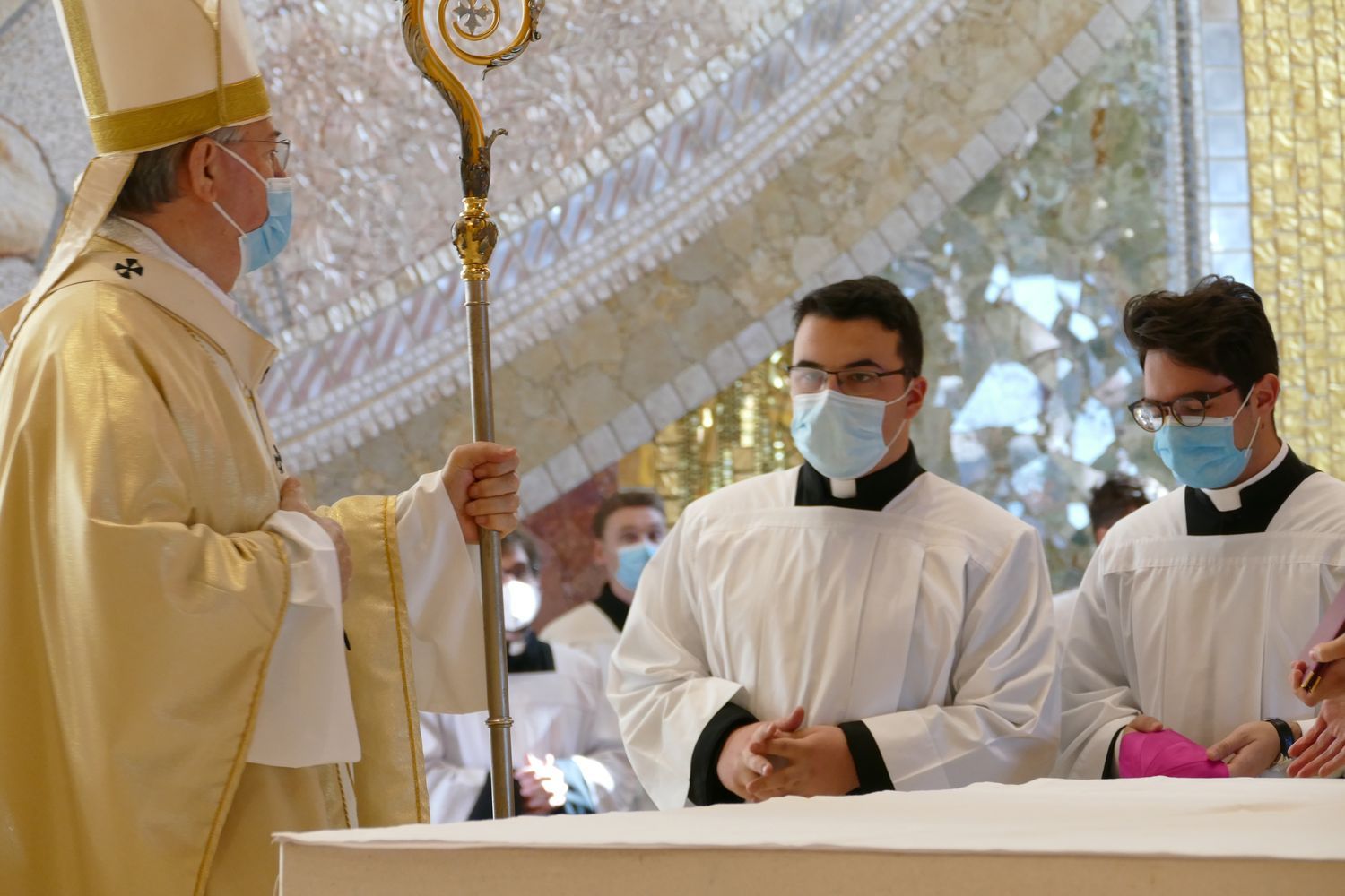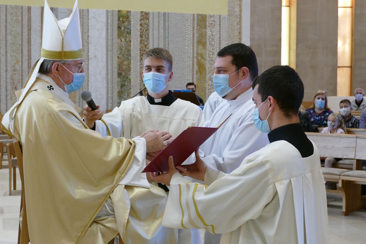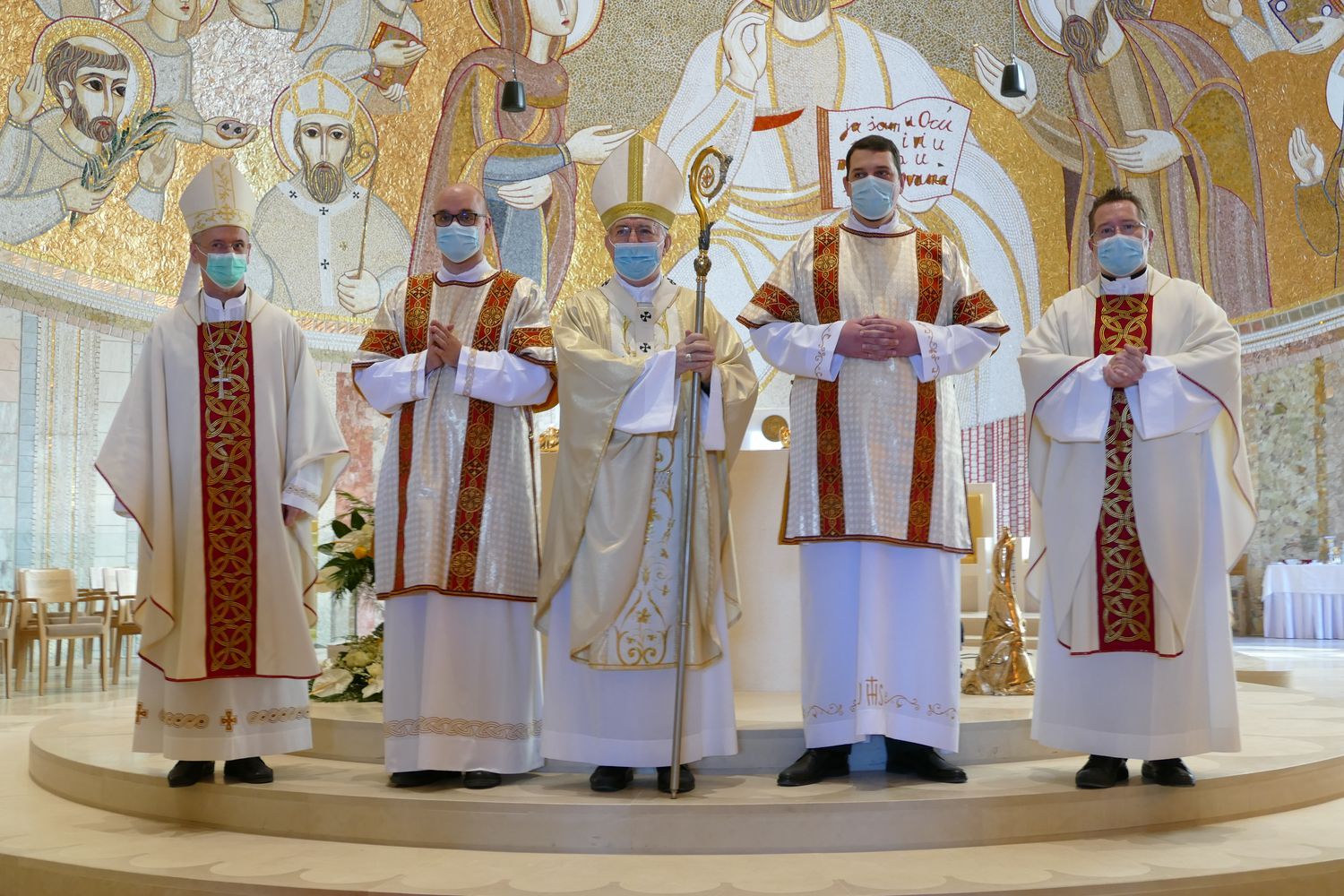 Nakon homilije nadbiskup Barišić je polaganjem ruku i posvetnom molitvom kandidatima podijelio sakrament svetoga reda đakonata. Potom su novozaređeni đakoni obukli službenu liturgijsku odjeću: štolu, koja je znak dostojanstva i vlasti, i dalmatiku, simbol spasenja, radosti i pravednosti. Na kraju obreda, đakoni su primili evanđelistar iz nadbiskupovih ruku te s njim izmijenili cjelov mira, a potom su pristupili služenju kod oltara.