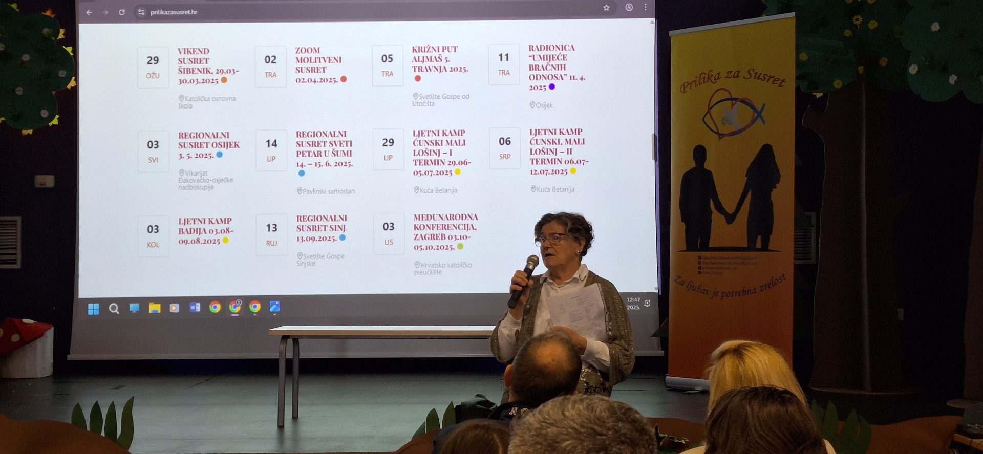 Glavna gošća susreta bila je dr. Josipa Škarica, dugogodišnja savjetnica za brak i obitelj u Šibenskoj biskupiji, koja je u zanimljivim te vrlo stručnim predavanjima podijelila svoje višedesetljetno iskustvo rada s bračnim parovima, obiteljima te sudjelovanja na tečajevima priprave za brak. Neke od tema bile su kako ostvariti kvalitetnu komunikaciju u vezi i braku, prirodne razlike između muškarca i žene te konkretne smjernice za razvoj međusobnog odnosa kroz dijalog, prihvaćanje, razumijevanje i ljubav.