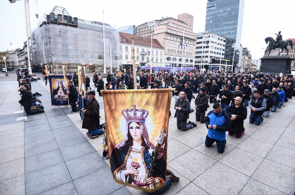 Javna molitva krunice organizirana je u sklopu projekta „Muževni budite“ – bratstvo „Vitezovi Bezgrešnog Srca Marijina“. Više stotina muškaraca koji su se okupili na glavnom zagrebačkom trgu molili su na sljedeće nakane: