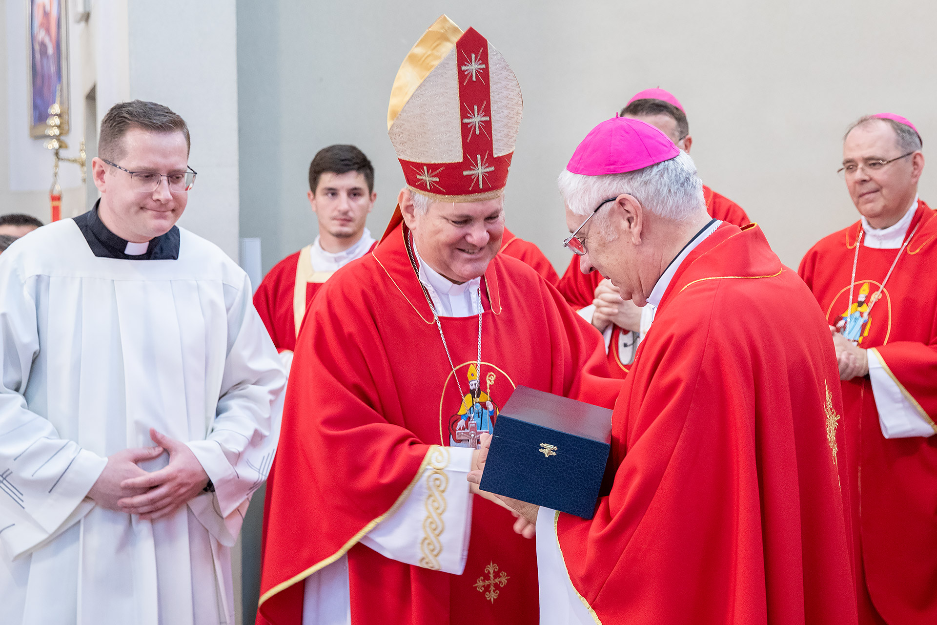 U homiliji je biskup Fazekas podsjetio na život i mučeništvo sv. Kvirina te istaknuo kako su ga posebno dojmile riječi koje se pripisuju ovom svecu: „Sad tek u pravom smislu izvršavam svoju svećeničku službu, kad ću samoga sebe prinijeti za žrtvu Bogu“. Rekao je i kako ovo posvjedočenje ne može ostati samo na razini divljenja, nego treba biti poticaj na nasljedovanje za svećenike, kao i za sve one, koji se Kristovim imenom diče. „Mi svećenici, danomice prinosimo Kristovu euharistijsku žrtvu Nebeskom Ocu. Možda pri tome malo mislimo na onu važnu činjenicu, da i mi sami moramo biti svojim životom žrtva na slavu Božju, i da je to dio našeg poslanja. Svakako, tu ne moramo odmah misliti na žrtvu vlastitog života, kada svoj život položimo za svoju kršćansku vjeru, za domovinu ili za naše najdraže. Jer je to poseban poziv, zasebna milost i dar od Duha Svetoga. Ali svi mi trebamo biti spremni za prihvaćanje malih i svakodnevnih žrtava i sitnih odricanja, kada sve to iz ljubavi činimo na slavu Božju, kao i za dobro naših bližnjih“.
