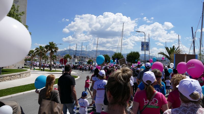 Počelo je okupljanjem u parku Zvončac, a potom je povorka od više tisuća ljudi odjevenih u prigodne majice s natpisom „Hod za život“ kretala se dostojanstveno i radosno Zapadnom obalom pjevajući brojne dalmatinske hitove uz pratnju prigodnog banda. Više od 200 volontera pazilo je da sve prođe upravo onako kako je zamišljeno.