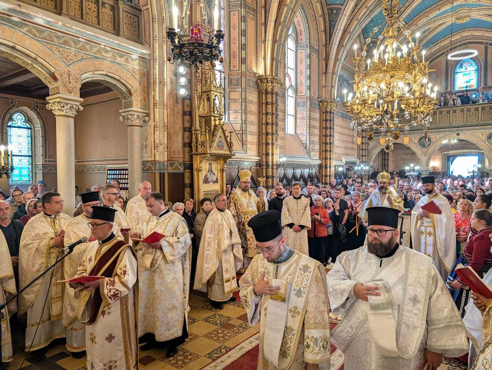 Prije početka arhijerejske liturgije, vladika Milan je postavio relikvijar na prijestolje, nasuprot biskupske katedre. Arhijerejsku božansku liturgiju sv. Ivana Zlatoustoga predslavio je prešovski nadbiskup i metropolita vladika Jona, uz susluženje vladike Stipića i brojnoga svećenstva, uz služenje četvorice đakona i više podđakona i poslužitelja. Liturgiju su pjevali dijelom bogoslovi Grkokatoličke bogoslovije iz Prešove, bogoslovi iz Nyiregyhaze u Mađarskoj te Katedralni zbor iz Križevaca, a liturgija je služena na hrvatskom i staroslavenskom jeziku. Podijeljeno je preko 1200 pričesti.