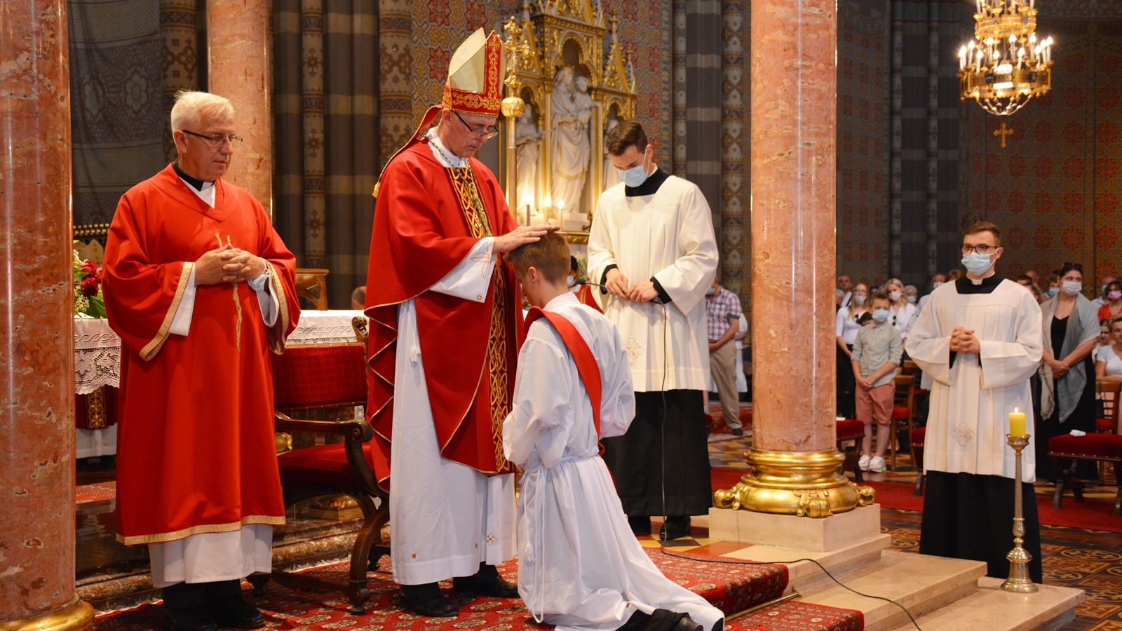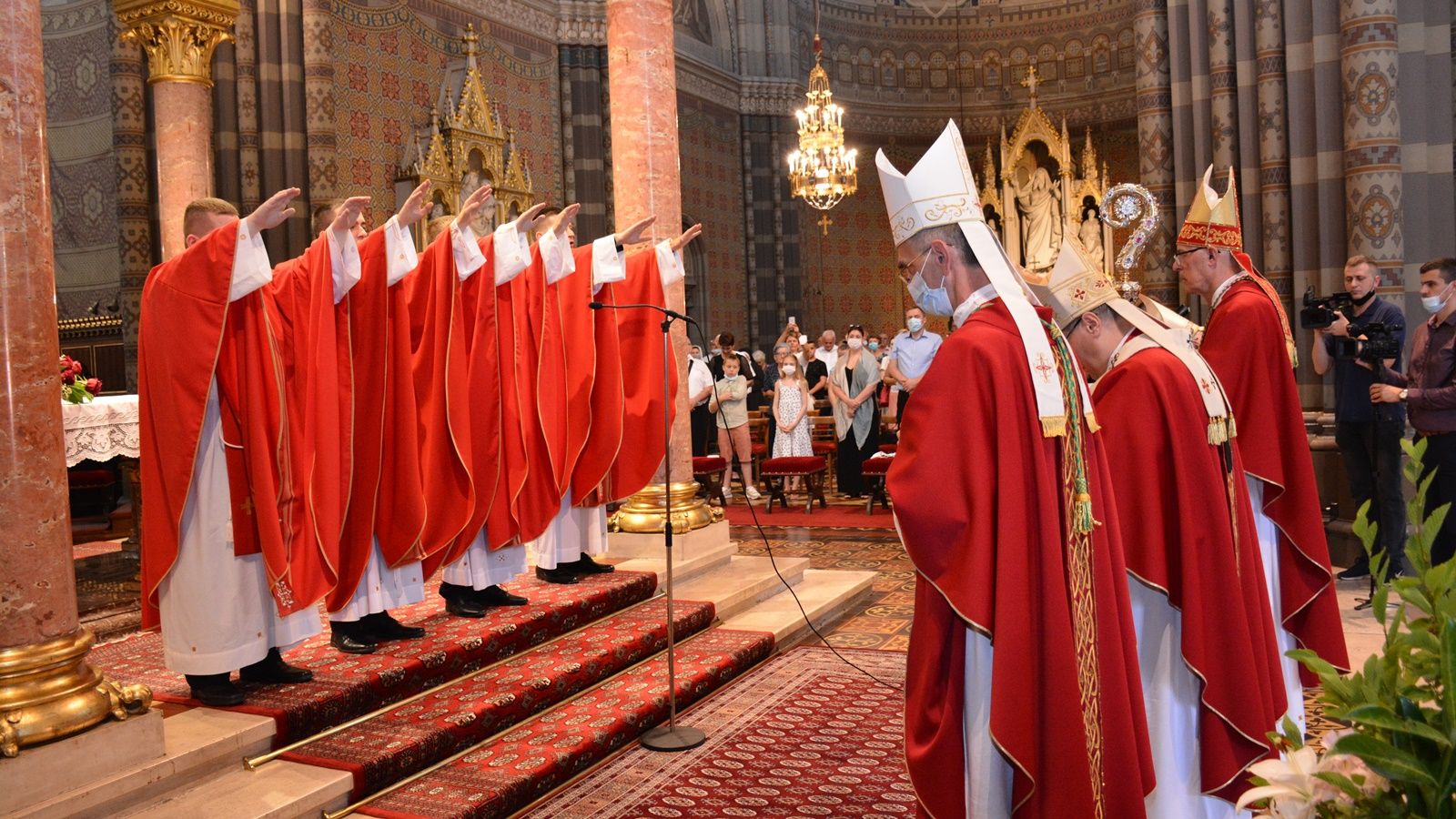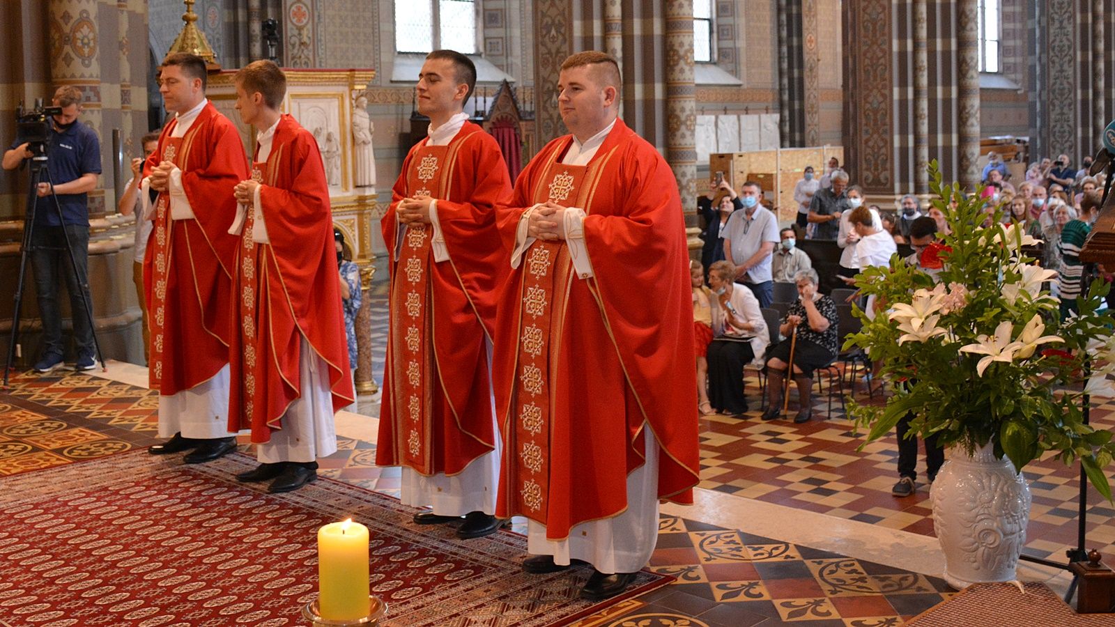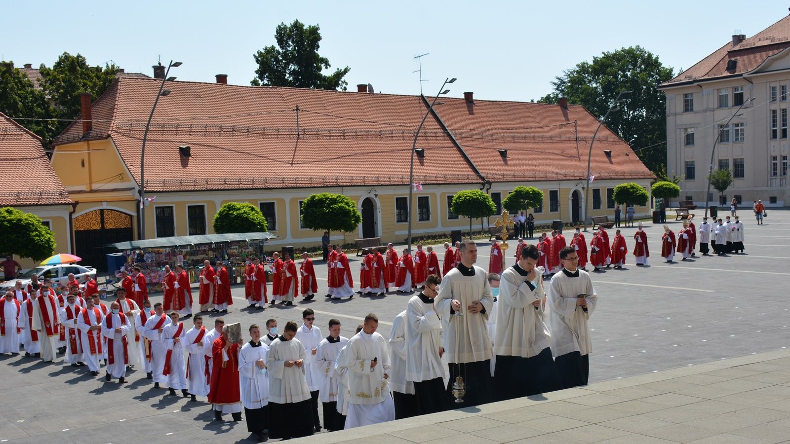 NA BLAGDAN SV. PETRA I PAVLA FOTO U Đakovu zaređena četiri nova svećenika Obred ređenja predvodio je Apostolski nuncij u RH nadbiskup Giorgio Lingua Bitno.net Podijeli: Foto: Đakovačko-osječka nadbiskupija Tijekom svečanog misnog slavlja u đakovačkoj prvostolnici sv. Petra, na svetkovinu apostolskih prvaka sv. Petra i Pavla, 29. lipnja 2021., polaganjem ruku i posvetnom molitvom apostolskog nuncija u RH, nadbiskupa Giorgia Lingue, za svećenike Đakovačko-osječke nadbiskupije zaređeni su đakoni: Bruno Diklić iz Župe sv. Dominika Savija u Slavonskom Brodu, Robert Erk iz Župe sv. Mihaela arkanđela u Osijeku, Krešimir Iljazović iz Župe sv. Leopolda Mandića u Slavonskom Brodu i Marko Obradović iz Župe sv. Andrije apostola iz Andrijaševaca, objavljeno je na stranicama Đakovačko-osječke nadbiskupije. Nakon svečanog ulaska procesije u đakovačku prvostolnicu pozdrav okupljenima uputio je nadbiskup Hranić, podsjećajući na višestruko slavlje – slavlje nebeskog zaštitnika đakovačke Prvostolnice i Prvostolnoga kaptola, slavlje sv. Petra i Pavla kao svetih zaštitnika konkatedrale u Osijeku te zaštitnika biskupskog grada Đakova i grada Osijeka. Poseban pozdrav uime svih okupljenih uputio je ređenicima, „koji danas Kristu Gospodinu poklanjate i na raspolaganje stavljate čitav svoj život, biće, snagu, srce i ljubav – sve što imate i što jeste“. Mons. Hranić zatim je uputio pozdrave predvoditelju slavlja, nunciju Lingui, tajniku Apostolske nuncijature u RH mons. Alfredu Rayanu D’Souzi, nadbiskupu u miru mons. Marinu Srakiću, pomoćnom biskupu mons. Ivanu Ćuriću, svim župnicima, župnim vikarima i umirovljenim svećenicima, članovima Prvostolnog kaptola, ravnatelju Hrvatske katoličke mreže i Hrvatskoga Caritasa mons. Fabijanu Svalini, zajednici Bogoslovnog sjemeništa na čelu s rektorom dr.sc. Stjepanom Radićem i zajednici KBF-a u Đakovu predvođenoj dekanom dr.sc. Vladimirom Dugalićem, bogoslovima, časnim sestrama i svim vjernicima. Na poseban način pozdrav je uputio župnicima župa ređenika i župa u kojima su proveli đakonski praktikum, roditeljima, rodbini i prijateljima mladomisnika. Svima koji nose ime jednoga od apostolskih prvaka nadbiskup je čestitao imendan, a čestitku u povodu 60. obljetnice svećeničkog ređenja uputio je dvojici svećenika: dr.sc. Slavku Platzu te vlč. Petru Šokčeviću. Svoju homiliju nadbiskup je započeo osvrćući se na ređenike: „Naši ređenici pripadaju izabranom, svećeničkom narodu Božjemu, opranom vodom i krvlju koja je potekla iz Kristova otvorena boka, nama koji smo zamilovani Božjom ljubavlju, narodu u kojemu svi imamo jednako dostojanstvo sinova i kćeri Božjih, te ga Duh Sveti ujedinjuje u jedno i čini otajstvenim Tijelom Kristovim. U tom Božjem narodu naše Đakovačko-osječke nadbiskupije, u svojim obiteljima koje su osnovne stanice života Crkve, kućne Crkve, te u svojim župnim zajednicama, oni su upijali svijest da su voljeni od Boga i spašeni u Kristu, upijali su svijest pripadnosti Božjem narodu koji je od Krista primio proročko, svećeničko i kraljevsko poslanje. Produbljujući tu klicu vjere, osjetili su se pozvanima staviti se u službu crkvene zajednice kojoj pripadaju, te su se proteklih godina kroz teološki studij te formaciju u Bogoslovnom sjemeništu pripravljali da bi po današnjem svećeničkom ređenju bili suobličeni Kristu glavi Crkve te da po pomazanju i posvećenju dobiju udio u njegovoj službi učitelja, svećenika i pastira.“ Prisutnim vjernicima nadbiskup je posvijestio da su svi pozvani snagom sakramenta krštenja i potvrde živjeti i svjedočiti za Krista, a svećenik i po svetom redu i novom zrelom slobodnom opredjeljenju, obećava na izričit način da će živjeti samo za Krista. Kao takav, on je pozvan u vjerničkoj zajednici biti svjedok i glas da se za Isusa ne može živjeti i da se njemu ne može pripadati polovično, od vremena do vremena, nego uvijek i potpuno. Nadbiskup je potom podsjetio kako na poziv pape Franje slavimo Godinu obitelji Amoris Laetitia. „Kao znak, recimo slobodno sakrament, čovjekove gladi za Bogom, svećenik je svjedok da se i bračna ljubav može i treba živjeti također kao izraz gladi za Bogom. Prezbiter je proročki glas i poziv bračnim drugovima za traženjem i otkrivanjem Boga kroz njihovu bračnu ljubav i za darivanje Bogu na oltaru koji se zove bračna ljubav, vjernost bračnom drugu, svetost i nerazrješivost sakramentalnog bračnog zajedništva, otvorenost daru života te osobno velikodušno darivanje i služenje članovima svoje obitelji“, naglasio je nadbiskup. Obraćajući se ređenicima, nadbiskup je podsjetio na dijalog između Šimuna i Isusa te Isusove riječi: „A ja tebi kažem: Ti si Petar-Stijena. I na toj stijeni sagradit ću Crkvu svoju” (usp. Mt 16,15-18). „Ne ostvaruje li se, dragi ređenici, ta Isusova riječ i na vama danas, ovdje u našoj prvostolnici, posvećenoj apostolu Petru. Ta riječ stoji zapisana i ovdje iznad ovoga oltara na kojemu ćete biti zaređeni. Gospodin vas je pozvao poput Petra i Pavla. U vašem djetinjstvu i mladosti naslutili ste njegov poziv ‘učinit ću vas ribarima ljudi’, kasnije ste o tome razmišljali, odlučivali se, odgovarali Isusu na njegovo pitanje: ‘A vi, što vi kažete tko sam ja’. Studirali ste teologiju i kristologiju, sve dok na kraju niste zajedno s Petrom ispovjedili ‘Ti si Krist – Pomazanik, Sin Boga živoga!’ Danas, po ovom svetom svećeničkom ređenju, Isus svakome od Vas govori: ‘A ja tebi kažem: Ti si Petar-Stijena’“, rekao je nadbiskup, dodajući kako se od njih sada očekuje da nepodijeljena pripadnost Gospodinu bude ‘miomiris njihova života’ jer će nastaviti Kristovo djelo posvećivanja, a svojim će životom ‘predstavljati’ Gospodinovo tijelo i krv – izvor otkupljenja i novoga života. Nakon homilije okupljenoj zajednici predstavljeni su ređenici, koje je nuncij Lingua osobno pitao o n