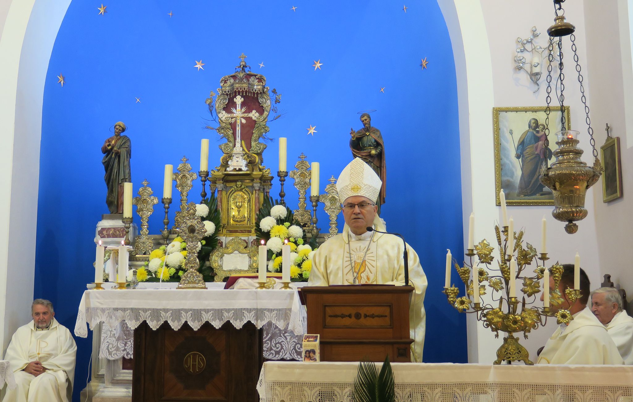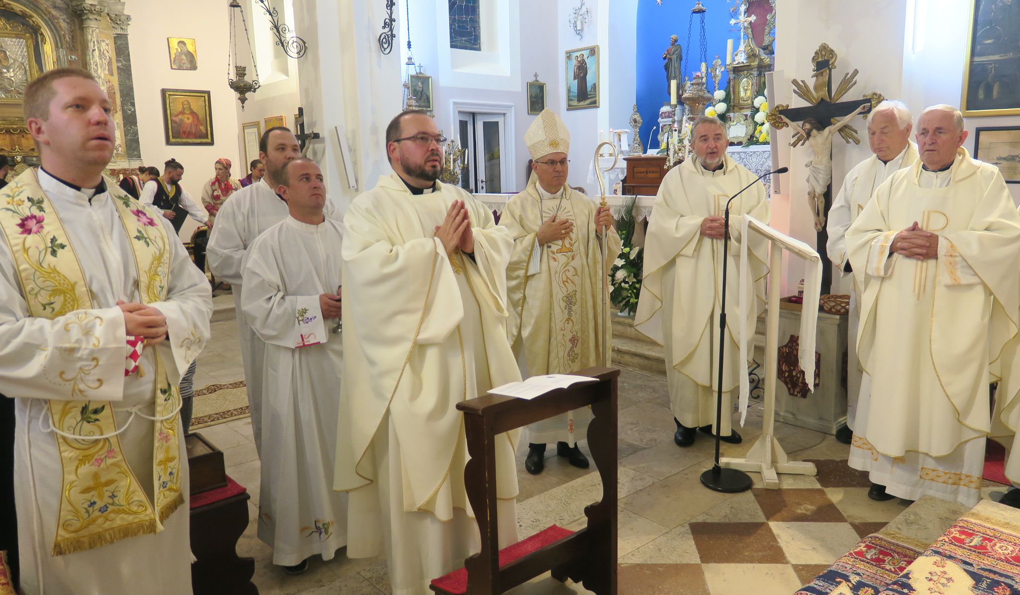 Pontifikalnu koncelebriranu misu predslavio je kotorski biskup Ivan Štironja u zajedništvu s biskupijskim svećenicima. Nakon pozdrava župnika don Roberta Tonsatija, biskup Štironja izrazio je dobrodošlicu svim vjernicima biskupije i hodočasnicima, te im je zahvalio za prisustvovanje. Istaknuo je važnost molitvenih okupljanja poput toga, kada se ne slavi samo blagdan župe, već i biskupije, budući da je bl. Gracija njezin sveti suzaštitnik. Biskup Štironja posebno je pozdravio sestre služavke Malog Isusa na čelu s provincijalnom glavaricom s. M. Terezijom Pervan.
