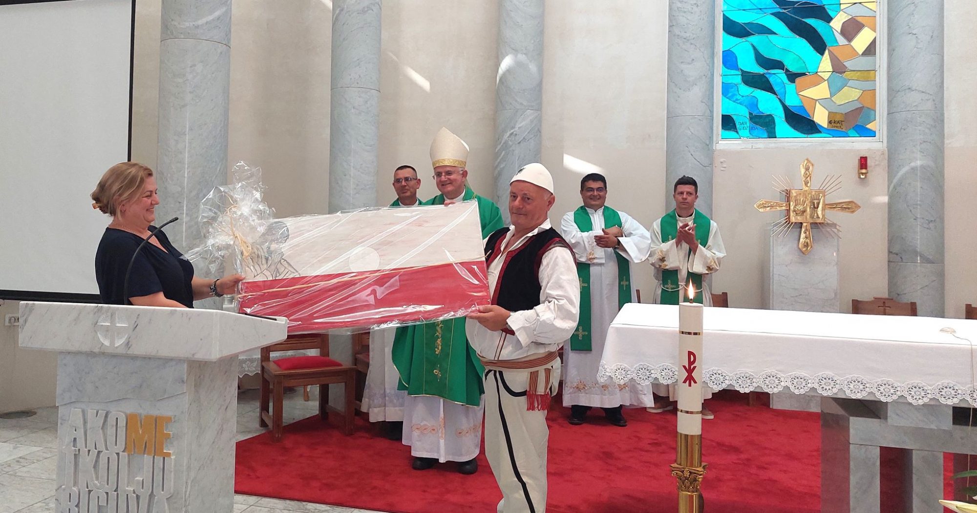 ZA 1500 ALBANSKIH KATOLIKA U RIJECI FOTO U Rijeci osnovana Albanska katolička misija Vrlo topao prvi rujanski dan nije spriječio lijepi broj vjernika albanske nacionalne manjine da dođu na misno slavlje u crkvu sv. Ivana Krstitelja na Škurinjama pod kojim je riječki nadbiskup Mate Uzinić u službu dušobrižnika albanske zajednice uveo svećenika Prizrensko-prištinske biskupije, Alberta Jakaja Bitno.net Podijeli: Foto: Riječka nadbiskupija U ovoj će Župi Jakaj boraviti kao sužupnik uz župnika Ivana Nikolića te svoj pastoralni rad usmjeriti na rad s vjernicima albanske nacionalne manjine kojih je, prema Jakajevim riječima, oko 1500 u Riječkoj nadbiskupiji. Mise na albanskom jeziku služit će svake nedjelje u 11:30 sati, javlja Riječka nadbiskupija. Stavljajući osnivanje albanske katoličke misije u Riječkoj nadbiskupiji u kontekst liturgijskih čitanja toga dana (Pnz 4,1-2.6-8: Ps 15,2-4ab.5ab; Jak 1,17-18.21b-22.27; Mk 7,1-8.14-15.21-23), nadbiskup je izdvojio tri poruke. Kao prvu, navodeći da su Izraelci bili veoma ponosni što su bili izabrani Božji narod, naglasio da to isto pripada danas i svakom drugom narodu. Svaki narod ima pravo na ponos. Svaki narod se ima pravo ponositi svojim jezikom, kulturom, poviješću i to je ono zbog čega smo ovdje – želimo albanskom narodu priznati pravo na ponos na albanski jezik i kulturu koju će u ovoj katoličkoj misiji u Riječkoj nadbiskupiji moći nastaviti, rekao je nadbiskup poručivši albanskim vjernicima koji žive na teritoriju Riječke nadbiskupije, da je ona i njihova nadbiskupija u kojoj imaju također pravo na svojstvenosti koje su specifične albanskoj zajednici. „Ono što vas i nas čini ponosnima je također pripadnost Katoličkoj Crkvi koja nadilazi nacionalne okvire. Katolička Crkva u Hrvatskoj je ista kao i Katolička Crkva u vašoj domovini iz koje ste došli. Ta Katolička Crkva je novi Božji narod u kojemu svi, bez obzira na naše razlike, trebamo imati jednaka prava i mogućnosti, narod koji, puno više od zakona i uredbi, ima Isusa Krista čije poslanje mi kao Crkva i narod nastavljamo u ovom vremenu i u čijoj prisutnosti je uvijek prisutan Isus Krist po Duhu Svetom koji nam je kao narodu darovan.“ Ova dva ponosa, nacionalni (koji nam je različit) i vjernički (koji nam je zajednički), nas ne smiju uzoholiti. I jedno i drugo je dar Božji. Sve nam je darovano. Vjera, kultura…, nije to plod naših zasluga. Sve nam je Bog darovao i zato pred tom činjenicom moramo biti ponizni i skromni. To što smo ponosni na svoj narod, ne smije umanjivati poštovanje drugih i to je također razlog zašto za vas ovdje ima mjesta i treba biti mjesta, istaknuo je nadbiskup. Vjernike je potaknuo da prihvaćajući taj dar koji nam je od Boga darovan, pretvorimo sebe u dar. U našoj darovanosti mora biti mjesta za sve, da ovo što imamo i s čime se ponosimo, ono s čime smo obdareni, katolička vjera i pripadnost narodu, bude nešto s čime ćemo ići ususret drugome. O tome govori i današnji evanđeoski ulomak. U njemu se ne govori o općim higijenskim potrebama, nego o odnosu između obreda kao takvog, a koji je često sam sebi svrha i u sebi ima opasnost isključivanja drugih i drugačijih, i moralnog shvaćanja određenih čina koje činimo i posljedica koje imaju u svakodnevnom životu i ponašanju. „Isus poručuje da nečistoća ne dolazi od drugih, da nisu stranci oni koji onečišćuju, da to nisu oni koji drugačije govore, koji se drugačije mole, oni koji pripadaju drugoj kulturi i govore drugim jezikom. Nisu oni ti koji nas onečišćuju, nego sva nečistoća i zlo izlaze iz ljudskog srca. U ljudskom srcu procesuiramo i pročišćavamo naše odnose, naše ponašanje, i u njemu biramo dobro ili zlo. Ako smo izabrali zlo, tada iz našeg srca izlazi zlo. Zato Isus nudi drugačiji način „pranja ruku“. Ruke se, u ovom Isusovom smislu, ne peru vodom kako bismo se oprali od drugih, nego se peru u susretu s drugima, u pružanju ruke drugome, u pomaganju drugome, u činjenju dobra. Mislim da danas u Rijeci zapravo pružamo ruku i „peremo ruku“, činimo da, iako smo ponosni na svoje, stvaramo prostor za drugoga. Ovdje to radimo na kulturnom, jezičnom i nacionalnom planu, ali se to treba dogoditi i na druge načine. U Crkvi i društvu bismo trebali biti svi jednaki. Svi smo pozvani ići ususret drugima donoseći svoje i time obogaćivati druge, ali i čistiti sebe kako bi iz našeg srca izlazilo samo dobro, poručio je nadbiskup. Prigodnim riječima albanskim vjernicima obratio se na albanskom jeziku njihov dušobrižnik kojemu je dobrodošlicu poželio i prigodan dar uručio župnik Ivan Nikolić. Okupljene je pozvao na suradnju i zajedništvo kazavši da je ovo sada i njihova Župa te će moći sudjelovati u programima koje organizira, kao i organizirati svoje. Najavio je proslavu blagdana Majke Tereze, zaštitnice albanske katoličke misije, koja će biti u četvrtak 5. rujna. Misa će se služiti u 18 sati. Osnivanje Albanske katoličke misije u Riječkoj nadbiskupiji svojim dolaskom podržali su ambasador Kosova u Hrvatskoj, Martin Berishaj, počasni konzul u RH, Bashkim Enesi, posebna savjetnica za Zapadni Balkan u Ministarstvu vanjskih i europskih poslova, Ermina Lekaj Prljaskaj, koji su se prisutnima obratili prigodnim govorom te drugi uvaženi gosti. Ambasador je istaknuo da osnivanje ove katoličke misije predstavlja više od vjerskog simbola – ono je znak raspoznavanja i prihvaćanja albanske zajednice u hrvatskom društvu. Albanci u Hrvatskoj, a posebno katolici, često su suočeni s izazovima očuvanja svoga jezika, vjere i kulturnog identiteta. Ova misija pružit će priliku za njegovanje tih vrijednosti na jednome mjestu, rekao je između ostaloga Berishaj zahvalivši Riječkoj nadbiskupiji, nadbiskupu i župniku ove Župe. Kroz zajedničke aktivnosti, molitvu i druženje, nadamo se da ćemo izgraditi snažniji osjećaj zajedništva, ne samo među nama, već i sa svim narodima ko
