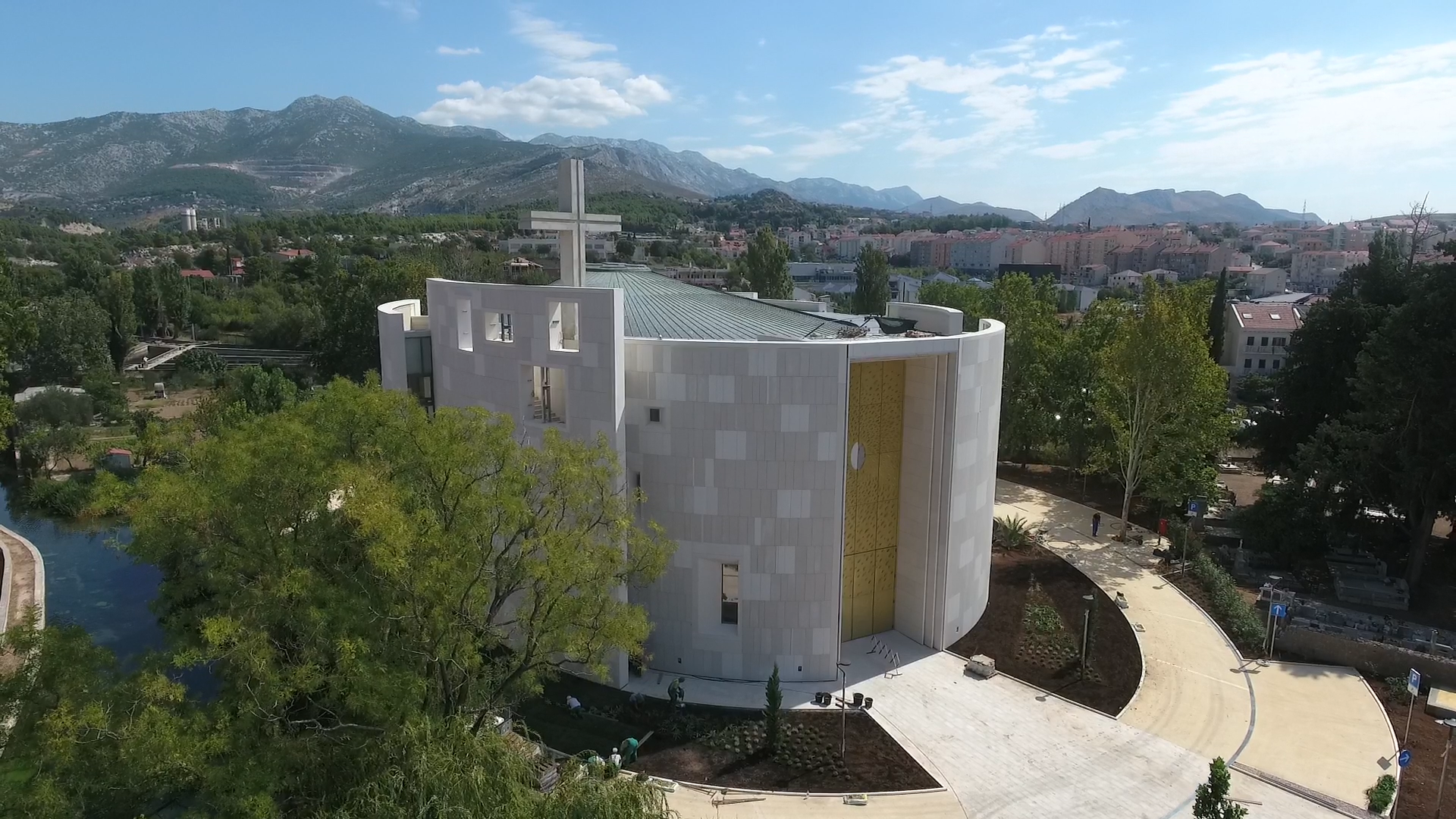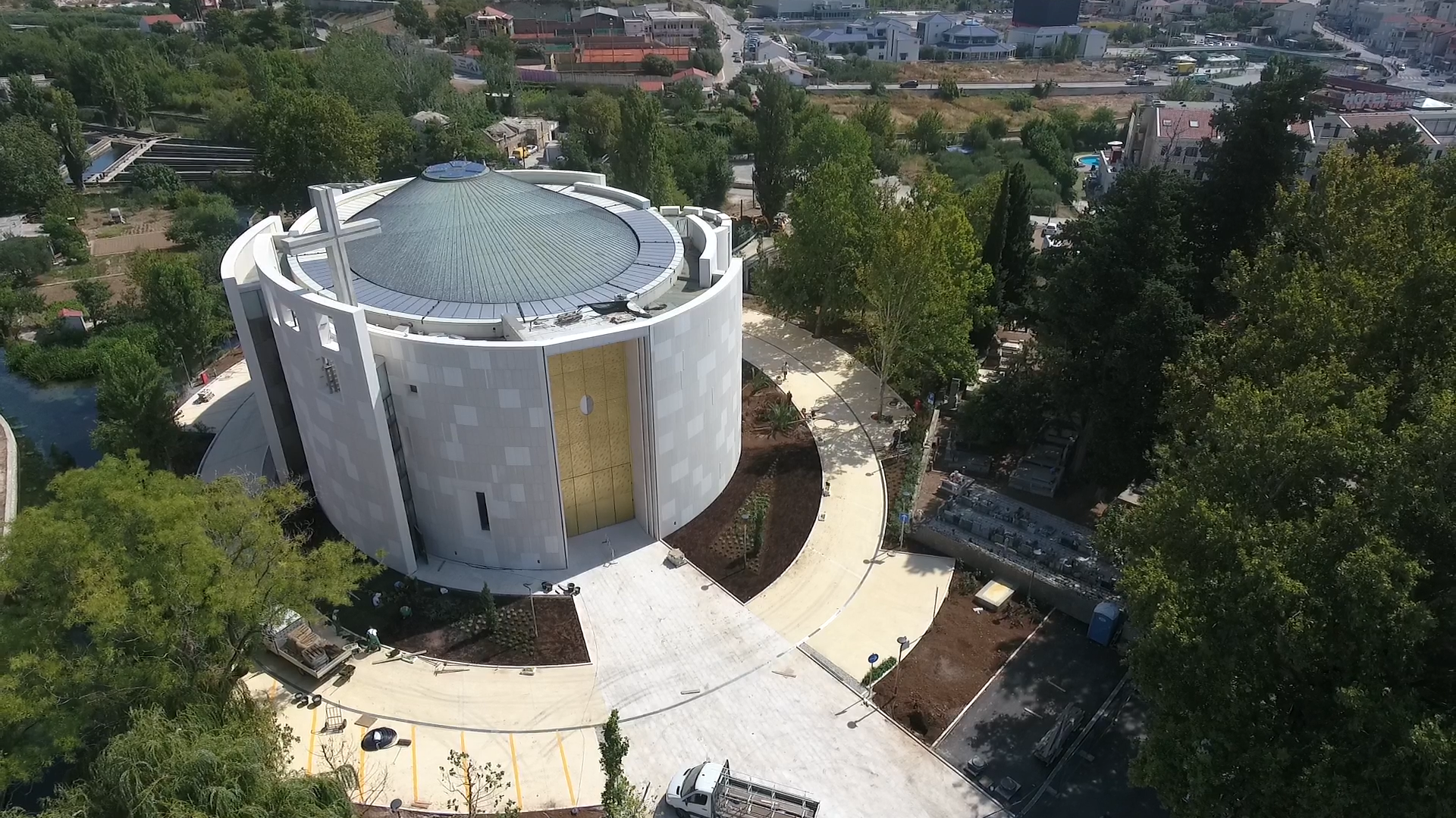 U PRASVETIŠTU GOSPE OD OTOKA FOTO U Solinu će u subotu biti posvećena nova crkva Svete obitelji – donosimo fotografije! Splitsko-makarski nadbiskup i metropolit Marin Barišić predvodit će u subotu, 5. rujna u 18 sati misu s posvetom novoizgrađene crkve Svete obitelji Bitno.net Podijeli: Foto: Tiskovni ured Splitsko-makarske nadbiskupije Splitsko-makarski nadbiskup i metropolit Marin Barišić predvodit će u subotu, 5. rujna u 18 sati misu s posvetom novoizgrađene crkve Svete obitelji u Prasvetištu Gospe od Otoka u Solinu. Prijenos uživo možete pratiti na YouTube kanalu, na Laudato TV-u i na HKM-u, javlja Tiskovni ured Splitsko-makarske nadbiskupije. Nadbiskup mons. Marin Barišić blagoslovio je 4. listopada 2013. godine gradilište i početak radova nove crkve u Solinu. Jedanaest godina nakon javnog natječaja i sedam godina nakon početka radova, crkva je završena i bit će posvećena 5. rujna 2020. godine. Gradnju ove suvremene crkve na povijesno važnom lokalitetu financirala je Splitsko-makarska nadbiskupija, koja će od Svete Stolice zatražiti da nosi naslov bazilike. Autor idejnog rješenja je arhitekt Viktor Vrečko, a crkva je duga 45 metara, široka 34 metara te visoka u presjeku 15 metara. Ukupna bruto površina crkve je 1100 četvornih metara sa 650 sjedećih mjesta. Glavni ulaz je na jugozapadu, a krasi ga portal koji je, u suradnji s g. Vrečkom, izradila firma Vetma d.o.o. Krovna konstrukcija je od lameliranih drvenih nosača. Uz crkvu je izgrađen i pastoralni centar. Za teološko-umjetničko uređenje unutrašnjosti crkve zadužen je jedan od najboljih suvremenih sakralnih umjetnika, slikar i kipar o. Marko Rupnik koji je, sa svojim timom, na dio iza oltara postavio mozaik koji predstavlja nebeski Jeruzalem, a u čijem je središtu Krist. Također, na mozaiku su i: Blažena Djevica Marija, sv. Ivan Krstitelj, sv. Josip, sv. Petar i sv. Pavao, evanđelisti Matej, Marko, Luka i Ivan, sv. Dujam, sv. Staš, sv. Lucija, sv. Cecilija, sv. Grgur Nazijanski, sv. Ivan Zlatousti, sv. Jeronim, sv. Franjo Asiški, sv. Klara Asiška, sv. Terezija – Benedikta od Križa, sv. Ivan Pavao II., sv. Majka Tereza, sv. Nikola Tavelić, sv. Marko Križevčanin, sv. Leopold Mandić, bl. Ozana Kotorska, bl. Marija Propetog Isusa Petković i bl. Ivan Merz. Lik bl. Alojzija Stepinca će biti u reljefu zajedno s blaženikovim moćima. Ostali zidove crkve oslikani su najvažnijim događajima u povijesti spasenja. Na glavnom oltaru, s prednje strane, bit će križ u kojeg su ugrađene moći sv. Dujma. Župa Gospe od Otoka okuplja oko 14 000 vjernika, a postojeća crkva ima samo 150 četvornih metara. Na vjeronauk redovito dolazi više od 1000 djece iz osnovne škole i oko 500 srednjoškolaca, studenata i mladeži, no nemaju uvjete za sve što im je za župne kateheze potrebno pa su se često, zahvaljujući gradu Solinu, koristili drugi prostori. Izgradnja nove crkve i pastoralnog centra zadovoljit će prostorne potrebe za pastoralni rad ove velike i žive župne zajednice. Osim toga, nova crkva ovoga Prasvetišta postat će mjesto hodočašća mnogim vjernicima, a osobito obiteljima. Foto: Tiskovni ured Splitsko-makarske nadbiskupijeFoto: Tiskovni ured Splitsko-makarske nadbiskupijeFoto: Tiskovni ured Splitsko-makarske nadbiskupijeFoto: Tiskovni ured Splitsko-makarske nadbiskupijeFoto: Tiskovni ured Splitsko-makarske nadbiskupije Podijeli: