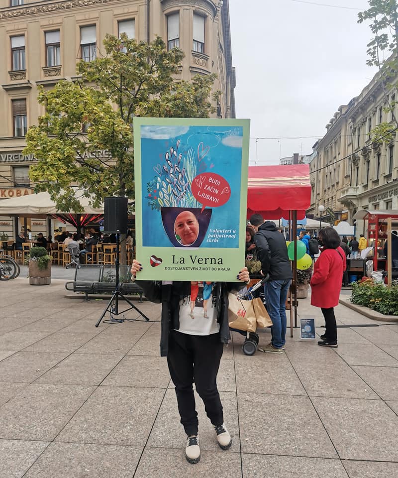 Na štandovima su, osim članova udruge i djelatnika Gradskog ureda za socijalnu zaštitu i osobe s invaliditetom, bili brojni volonteri La Verne, među kojima i volonterka Kristina Jadrijević- Cvrlje. “Počela sam volontirali prije sedam godina u grupi za palijativnu skrb u okviru Franjevačkog svjetovnog reda. Palijativna skrb me je privukla zbog iskustva u obitelji, a i željela sam nešto dobro napraviti – i radi Boga i radi čovjeka”, rekla je Kristina, a kada smo je pitali kako bi sažela svoj rad odgovorila je: “Puno suza, puno smijeha, puno glavobolja bilo je u ovih sedam godina. Iako se na prvu čini teško i zahtjevno, ponekad čak i mučno, uz misu i molitvu sve postaje lako i slatko”.