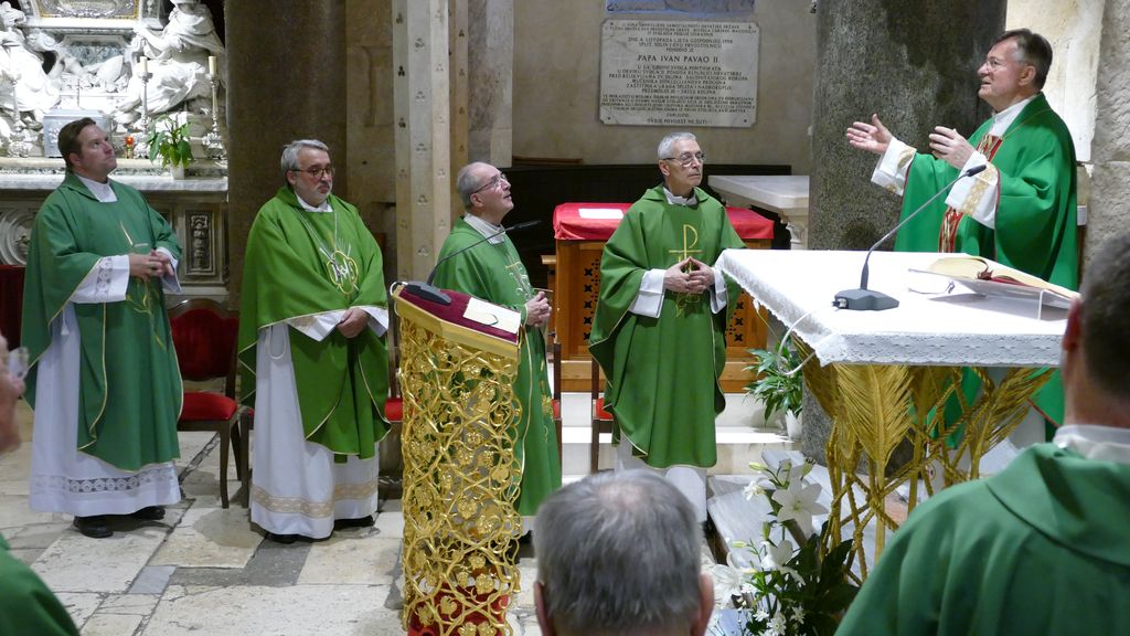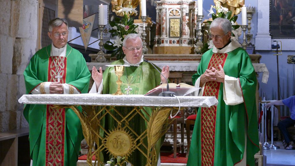 U koncelebraciji su bili splitsko-makarski nadbiskup i metropolit mons. Marin Barišić, biskupi Umbrije; nadbiskup Spoleta – Norcie i predsjednik Biskupske konferencije Umbrije mons. Renato Boccardo, biskup u miru iz Gubbia mons. Mario Ceccobelli, biskup Gubbia mons. Luciano Paolucci Bedini, biskup Grada Castella mons. Domenico Cancian, biskup u Terni-Narni-Amalia mons. Giuseppe Piemontese, biskup u Orvieto-Todi mons. Benedetto Tuzia, pomoćni biskup Perugie mons. Marco Salvi te generalni vikar Splitsko-makarske nadbiskupije mons. Miroslav Vidović i nadbiskupov tajnik don Gabrijel Kamber.
