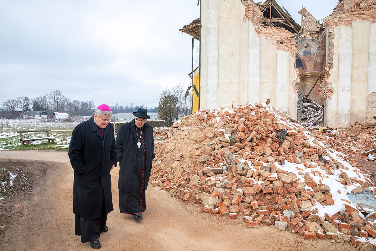 ZNAK BLIZINE I ZAJEDNIŠTVA Kardinal Puljić i nadbiskup koadjutor Vukšić pohodili u potresu stradala područja Sisačke biskupije Nadbiskup Vrhbosanski kardinal Vinko Puljić i nadbiskup koadjutor Tomo Vukšić pohodili su u nedjelju, 17. siječnja u potresu stradala područja Sisačke biskupije želeći tako izraziti blizinu i zajedništvo ljudima pogođenim potresom. Sisačka biskupija Podijeli: Foto: Sisačka biskupija Tom prigodom kardinal Puljić predvodio je misno slavlje u župnoj crkvi sv. Ivana Nepomuka u Glini u zajedništvu s nadbiskupom koadjutorom Vukšićem i sisačkim biskupom Vladom Košićem, domaćim župnikom preč. Ivicom Mađerom i kardinalovim tajnikom vlč. Fabijanom Štedulom. Na početku sve okupljene, a posebno goste iz Sarajeva pozdravio je biskup Košić zahvalivši im na dolasku i znaku potpore Sisačkoj biskupiji koja je teško stradala od potresa. Biskup je i zahvalio Bogu što je ova crkva ostala čitava jer već treću nedjelju za redom u 29 župnih crkvi na području biskupije nije moguće imati misu jer su one ili srušene ili toliko oštećene da se ne mogu koristiti. „Mi smo ljudi nade i vjerujemo, kao što se već pokazala velika ljubav i solidarnost naših ljudi u čitavom svijetu, da će se i zajedničkim snagama i ljubavlju sve ono što je porušeno i izgraditi“, poručio je biskup Košić. U svojoj homiliji kardinal Puljić je rekao kako nije ovdje došao da bi govorio lažnu utjehu već kako bi govorio o tome kako ustrajati i ne klonuti duhom, sačuvati nadu i biti svjestan da su sva ta iskušenja koja proživljavamo šansa da položimo ispit vjere. „Nema života bez kušnje. Kušnje su sastavni dio ovozemaljskog hoda i te kušnje pokušavaju pokazati do čega mi držimo, što je nama sveto i za što smo se spremni žrtvovati. Zato na poseban način želim pokazati vama kako s Bogom surađivati. Danas nam Riječ Božja tako lijepo poručuje da smo zajedno s Kristom jedno tijelo. Krštenjem smo povezani u Kristu…. Mi ljudi imamo rodbinsku povezanost, to je naravna povezanost, ali osim te krvne veze, ova krsna veza je jača. Ona nas veže s Kristom u jednu Crkvu. On je glava, a mi smo njegovi udovi. To trebamo živjeti i u ovoj kušnji“. Kardinal je rekao i kako danas među ljudima vlada strah no moramo sačuvati sposobnost oslonca na Božju ljubav. „Strah vlada među ljudima, počevši od korone, a sad i od potresa. Međutim, ne smijemo dopustiti da nam strah oduzme pamet. Moramo sačuvati pamet, sposobnost prosuđivanja, sposobnost oslonca na Božju ljubav. Ljubav nas Božja nikada nije izdala, ona je uvijek s nama”, poručio je između ostalog. Nakon popričesne molitve okupljene je pozdravio i nadbiskup koadjutor Tomo Vukšić istaknuvši kako su oni danas ovdje vrsta glasonoša dobrote onog dijela Crkve koja živi na području Sarajevske nadbiskupije. „Pretpostavljam da Vam je poznato da smo pozvali vjernike na molitvu te da smo na prvu nedjelju poslije potresa skupljali priloge za stradale… Želim vam priopćiti da smo zahvaljujući dobroti naših vjernika i svećenika prikupili 180 000 eura koje će biti stavljene na raspolaganje Sisačkoj biskupiji i biskupu Vladi da ih upotrijebi tamo gdje je najpotrebnije“, poručio je vrhbosanski nadbiskup koadjutor uz pljesak okupljenih u crkvi. Nakon Gline gosti su u pratnji biskupa Košića pogledali i srušeno Svetište Majke naših stradanja u Gori, crkvu sv. Nikole i Vida u Žažini, crkvu sv. Marije Magdalene u Selima te katedralu Uzvišenja sv. Križa u Sisku. U Sisku su gosti posjetili i distribucijski Centar Caritasa gdje ih je s do sada učinjenim upoznala koordinatorica s. Smilja Čirko. Foto: Sisačka biskupijaFoto: Sisačka biskupijaFoto: Sisačka biskupijaFoto: Sisačka biskupijaFoto: Sisačka biskupijaFoto: Sisačka biskupijaFoto: Sisačka biskupijaFoto: Sisačka biskupijaFoto: Sisačka biskupijaFoto: Sisačka biskupijaFoto: Sisačka biskupijaFoto: Sisačka biskupija Podijeli: