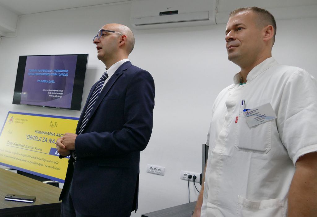 Na tiskovnoj konferenciji održanoj u Kliničkom bolničkom centru Split, 27. svibnja, predstavljen je endoskopski stup i oprema za operacijske zahvate u novorođenčadi, dojenčadi i djece za potrebe Klinike za dječju kirurgiju.