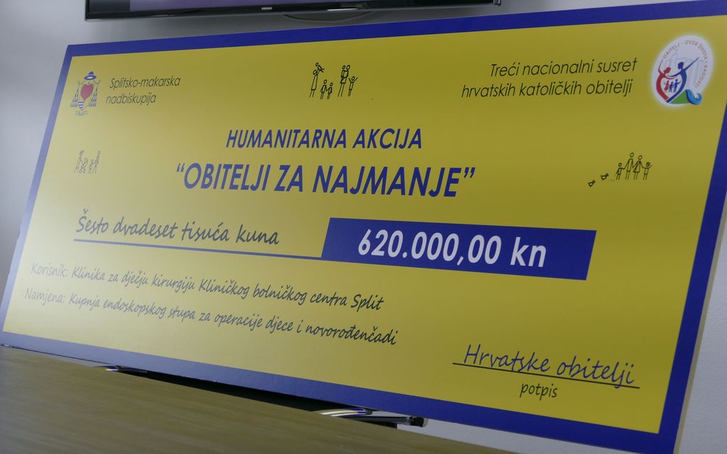 „Radosni smo što smo Susretom hrvatskih katoličkih obitelji mogli učiniti nešto dobro. Obitelj je naše opće dobro i naše obitelji su učinile ovu lijepu stvar. Posebno mi je drago što je ova donacija bila usmjerena prema našim najmanjima jer oni su naša budućnost. Od srca želim da vi oni kojima je potrebno ovakvo liječenje narastu veliki i budu zdravi“, kazao je nadbiskup Barišić i zahvalio svima koju su sudjelovali u ovoj humanitarnoj akciji.