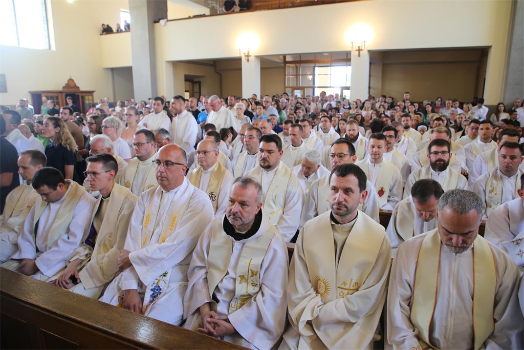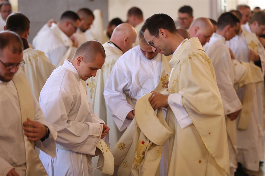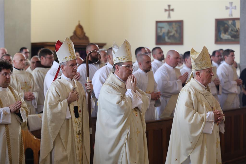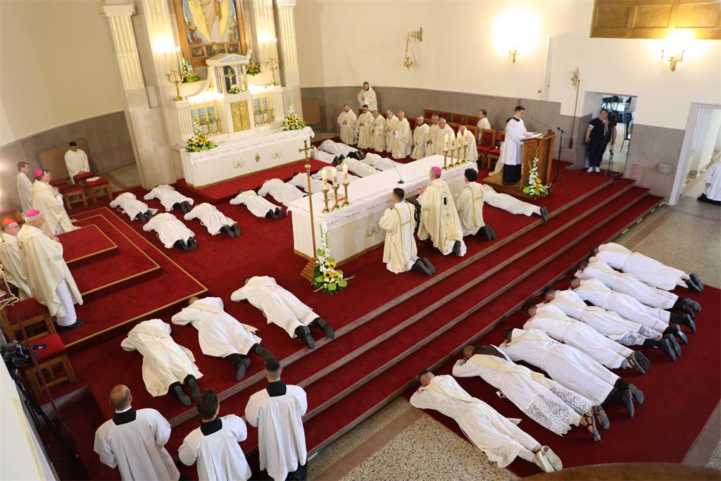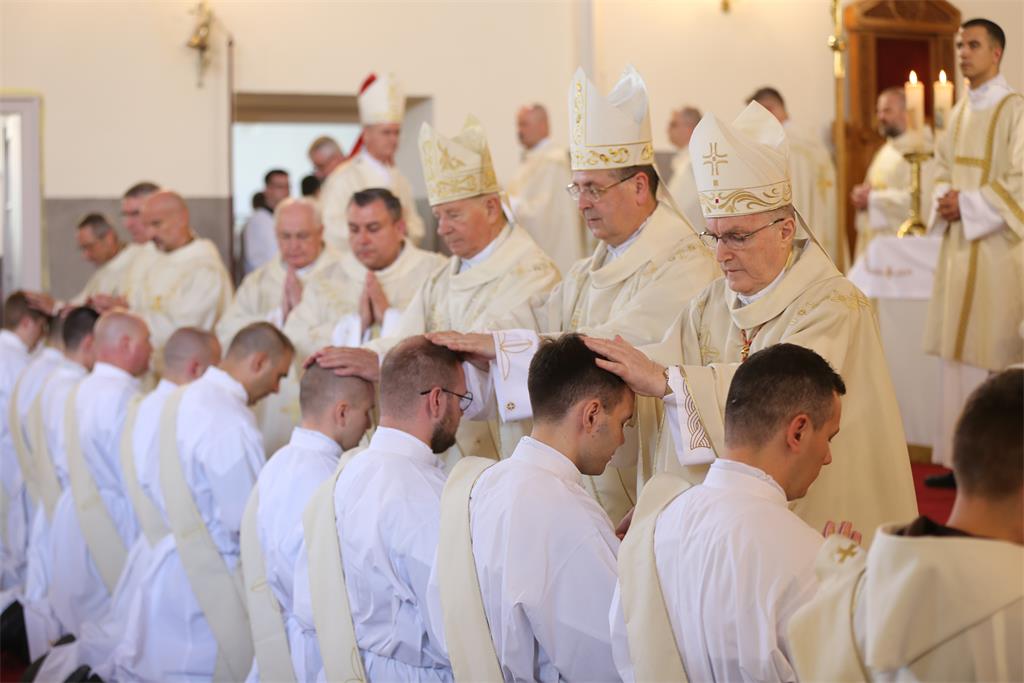 NA ZAGREBAČKOJ ŠALATI FOTO Nadbiskup Dražen Kutleša zaredio 24 nova svećenika Nadbiskup Kutleša podsjetio je ređenike kako “vaše ruke nisu više samo vaše. Krist se njima služi. Zato ih čuvajte dostojnima! Ne dajte da ikada postanu oruđe Zloga. Neka nikada ne postanu hladne, zatvorene i pohlepne. Svijet treba dodir koji blagoslivlja" IKA Podijeli: Foto: TU Zagrebačke nadbiskupije Zagrebački nadbiskup mons. Dražen Kutleša predvodio je u subotu 21. lipnja euharistijsko slavlje tijekom kojega je zaredio 24 nova svećenika, objavio je Tiskovni ured Zagrebačke nadbiskupije. Na misnom slavlju održanom u sjemenišnoj crkvi Srca Isusova na zagrebačkoj Šalati koncelebrirali su zagrebački nadbiskup u miru kardinal Josip Bozanić, pomoćni biskupi mons. Ivan Šaško i mons. Mijo Gorski, biskupski vikar i kancelar NDS-a preč. Marko Kovač, rektor Međubiskupijskog sjemeništa preč. Matija Pavlaković, o. d. dekana Katoličkog bogoslovnog fakulteta fra Mario Cifrak, redovnički provincijali, rektor Nadbiskupskog bogoslovnog sjemeništa u Zagrebu preč. Vlado Razum, duhovnici NBS-a te brojni okupljeni svećenici. U homiliji nadbiskup Kutleša istaknuo je kako “stojimo pred otajstvom svećeničkoga ređenja, svetim činom u kojem se obične ruke pomazuju svetom pomašću kako bi bile posvećene da mogu nositi samoga Krista. U rukama današnjih ređenika promatramo više od tijela i krvi: vidimo instrumente milosti koje će od danas služiti Božjemu narodu na posve nov način. Te će ruke blagoslivljati, podizati posrnule, dijeliti svete sakramente, prikazivati euharistijsku žrtvu i pružati Kristov dodir svijetu. One će, poput Kristovih ruku, postati znak Božje prisutnosti među nama. To je srce svećeničkoga poziva: dopustiti Kristu da se posluži našim rukama, našim srcem i čitavim našim bićem.” “Dragi ređenici, od danas će vaše ruke blagoslivljati s Kristovim autoritetom i autoritetom Crkve. Taj vam autoritet nije dan da pokažete moć, nego da prenesete Božju nježnost. Vaše ruke postaju most između srca koje krvari i Boga koji proniče srca”, poručio je ređenicima nadbiskup i nastavio: “Mnogo puta nećete znati što reći, ali vaše će ruke znati što učiniti. Spontano će se podići na blagoslov utjehe ožalošćenom, blagoslov ohrabrenja i zaštite djetetu koje polazi u školu. Položit ćete ih na bolesničko čelo u sitne jutarnje sate. Vaša će prisutnost govoriti: ‘Nisi zaboravljen. Bog te vidi. Bog te voli.’ Blagoslov je više od riječi. Blagoslov je kontakt. Pogled. Gesta. Milost u pokretu. U svijetu u kojem mnogi dodiri ranjavaju, svećenik je pozvan doticati kako bi izliječio i povio rane.” Nadbiskup Kutleša podsjetio je ređenike kako “vaše ruke nisu više samo vaše. Krist se njima služi. Zato ih čuvajte dostojnima! Ne dajte da ikada postanu oruđe Zloga. Neka nikada ne postanu hladne, zatvorene i pohlepne. Svijet treba dodir koji blagoslivlja. Ljudi žeđaju za rukama koje ne prokazuju, nego pokrivaju ljubavlju. Vaše su ruke pozvane biti znak Očevih ruku, onih ruku koje su prvi put blagoslivljale u stvaranju i nikada nisu prestale blagoslivljati ovaj svijet. Osim što blagoslivljaju, svećeničke ruke dobivaju još dublji zadatak: one podižu palog čovjeka.” Naglasio je da “ljudi najčešće ne trebaju objašnjenje za svoju bol. Trebaju ruku koja će ih povesti. Biti svećenik ne znači imati sve odgovore. Znači biti spreman koračati uz čovjeka dok ne pronađe nadu. Susrest ćete i nekoga tko je možda sve izgubio – obitelj, posao, dostojanstvo. Dok vam bude pričao svoju životnu priču, nećete ni znati što mu reći, ali ako ljubite svjesni snage svoga pomazanja, vaša prisutnost, vaš pogled pun razumijevanja i vaša pružena ruka mogu ga pokrenuti. (…) Bog vas ne treba savršene, nego spremne. Možda će upravo vaše ruke, i samo vaše, biti one koje će nekomu donijeti život. Blagoslivljanje i podizanje slabih, kao i sve drugo što kao svećenici budete činili ima smisla samo ako počinje i završava sa svetim euharistijskim prinosom.” “Oltar je mjesto na kojem prestaje vaša svakodnevica, a započinje vječnost. Mjesto gdje svećenikove ruke postaju posuda nevidljivoga Boga. Zato vas Crkva danas posvećuje. Zato vam biskup pomazuje ruke – jer ćete ih koristiti za ono što ni anđelima nije dano: prinositi na oltaru, iz dana u dan, beskrvnu žrtvu Sina Božjega”, rekao je mons. Kutleša i dodao: “Bili za oltarom u velikoj katedrali ili u maloj župnoj kapelici, uvijek će se jednako, na vašu riječ, nebesa otvarati da prigrle zemlju. A vi? Dok sve to budete činili, često nećete ništa osjećati. Često ćete biti umorni; često pritisnuti brigama. No, svejedno, vaše će ruke pred očima naroda podizati Krista. Prinosit ćete njegovu Žrtvu. Vaše ruke držat će Tijelo koje se predaje za život svijeta. To je čudo Euharistije. Bog bira ostati među nama preko posvećenih čovjekovih ruku. Ne zato što bi čovjek bio bezgrješan, nego zato što je rekao: ‘Evo me.’ (…) I kad ostarite, a vaše ruke zadrhte uzdižući Tijelo i Krv Kristovu, neka vam srca i dalje gore nesmanjenim žarom. Svaki put kad izgovorite: ‘Ovo je tijelo moje’, neka to ne bude samo Kristova žrtva – nego s njom prinesite i svaki svoju. Pazite da se svetinjama koje prinosite i sami posvećujete. Život svakoga od vas, vaš umor, vaša vjernost, sve može postati dar na tom istom oltaru.” Na kraju nadbiskup je ređenika ohrabrio rekavši: “Ne bojte se istrošiti za druge. Kristove su ruke križem izranjene i na križu probodene. Ne bojte se ni vi izložiti svoje i biti ranjeni.” Pozvao je i vjernike da mole za ređenike: “Neka njihovo srce ostane vjerno, a ruke otvorene za milosrdnu blizinu. Neka Gospodin Isus – koji je svojim rukama ozdravljao, podizao, blagoslivljao i lomio kruh – njihove ruke ojača kad zadrhte, očisti ih kad se uprljaju i primi ih u svoje vječne ruke, kad jednoga d