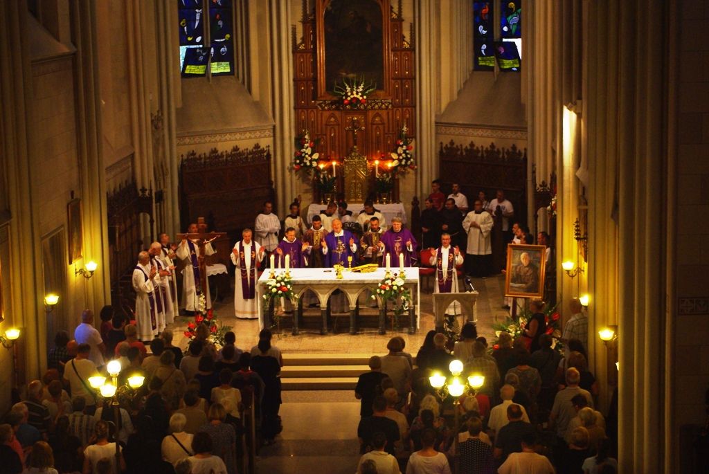Potom je u 18,30 sati u crkvi sv. Franje Asiškog na Kaptolu započelo euharistijsko slavlje koje je predvodio mons. Ivica Petanjak – biskup krčki, u zajedništvu s petnaestak svećenika. Prije početka slavlja samostanski gvardijan fra Zdravko Lazić pozdravio je sve prisutne i na poseban način predsjedatelja slavlja pri čemu je pozvao »da ova sveta misa bude zahvala Bogu za sve što nama je Bog po fra Bonaventuri dao, što nam je po njemu otkrivao, zahvala za sve susrete s njim, sve svete mise, sve razgovore, za sve doživljeno i primljeno od njega.«