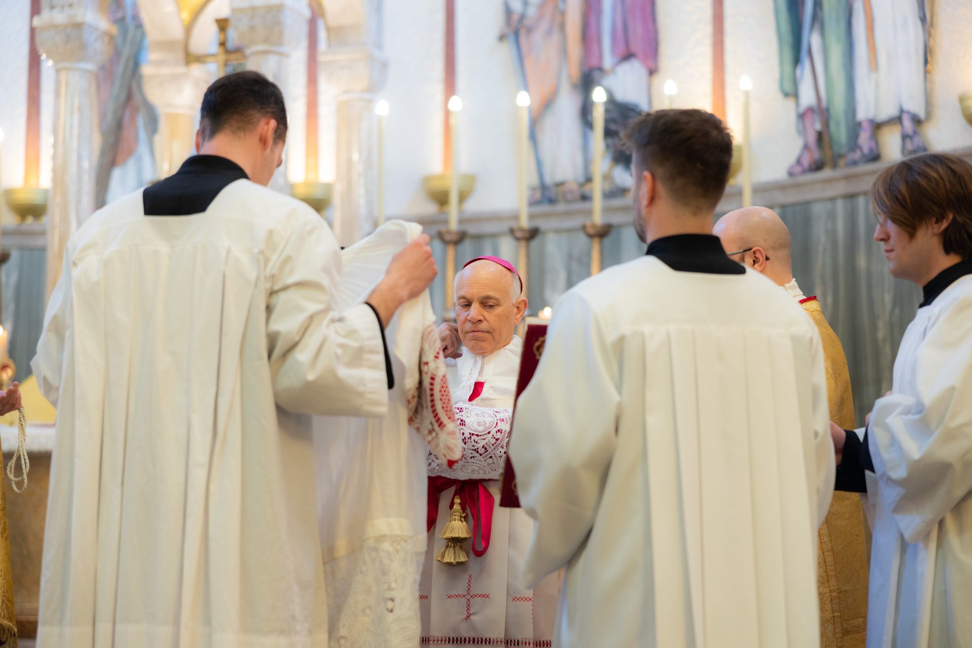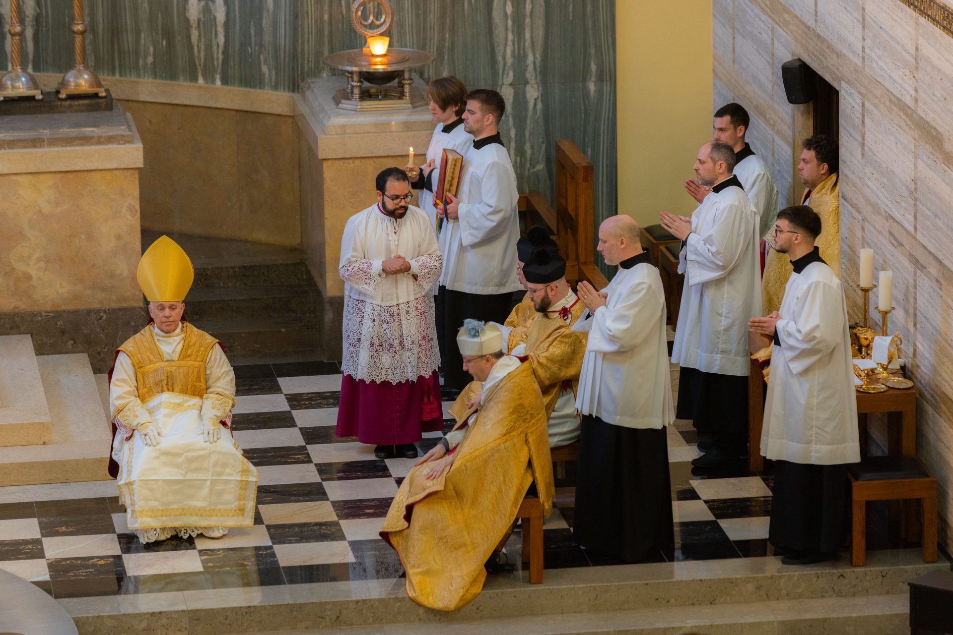 Mons. Salvatore J. Cordileone, nadbiskup San Francisca, danas je u zagrebačkoj crkvi sv. Blaža služio svečanu pontifikalnu misu, oblik liturgije po tradicionalnom rimskom obredu koji u svom punom i svečanom obliku u Hrvatskoj nije slavljen već više od pola stoljeća. Donosimo fotogaleriju s ovog povijesnog događaja. Podsjećamo, ranije je nadbiskup Cordileone posjetio Krašić, Hrvatsko katoličko sveučilište, grkokatoličku zajednicu u Zagrebu, a molio je i s članovima inicijative 40 dana za život ispred bolnice u Vinogradskoj ulici. Njegov posjet Zagrebu, u organizaciji društva Benedictus, završava u nedjelju 8. ožujka.