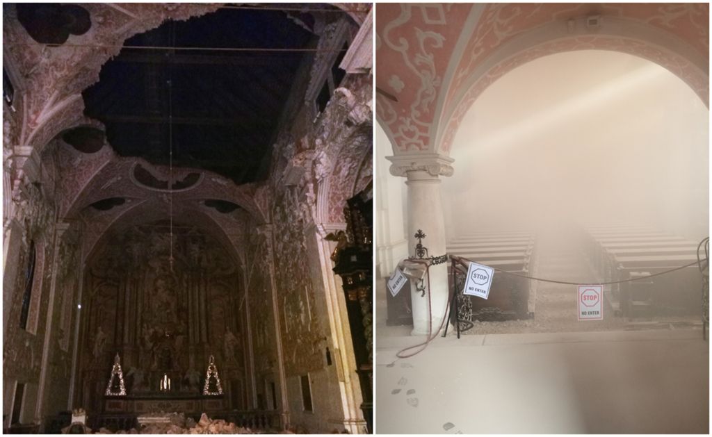 POSLJEDICE POTRESA U PETRINJI U potresu teško oštećene zagrebačke crkve sv. Katarine i sv. Marka na Gornjem gradu Zbog posljedica potresa pao veći dio svoda iznad svetišta u jednoj od najljepših baroknih crkvi u Zagrebu. Vlč. Tomislav Hačko Podijeli: U utorak, 29. prosinca 2020., u potresu koji je u 12.19 sati imao epicentar u Petrinji, magnitude 6.2 po Richteru, oštetio je i akademsku crkvu sv. Katarine u Zagrebu na Gornjem Gradu. Tako je zbog posljedica potresa pao veći dio svoda iznad svetišta u jednoj od najljepših baroknih crkvi u Zagrebu. Također, i u župnoj crkvi sv. Marka na istoimenom Trgu, zabilježena su teža oštećenja na svodu, ali i na južnom portalu crkve kojega krase kipovi Isusa Krista s Bogorodicom te apostolima i evanđelistima. Još jednom pozivamo sve vjernike, a osobito vjernike grada Zagreba da nam se pridruže u dnevnoj molitvi u 12 sati na Kamenitim vratima koju prikazujemo za prestanak pandemije zbog virusa Covid-19, ali i za sve one koji trpe zbog posljedica potresa 22. ožujka i 29. prosinca 2020. Podijeli: