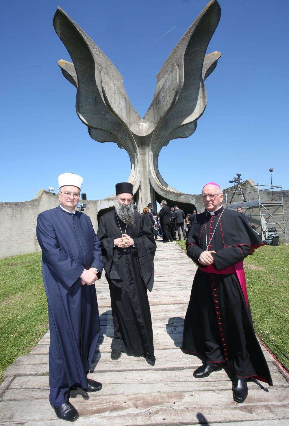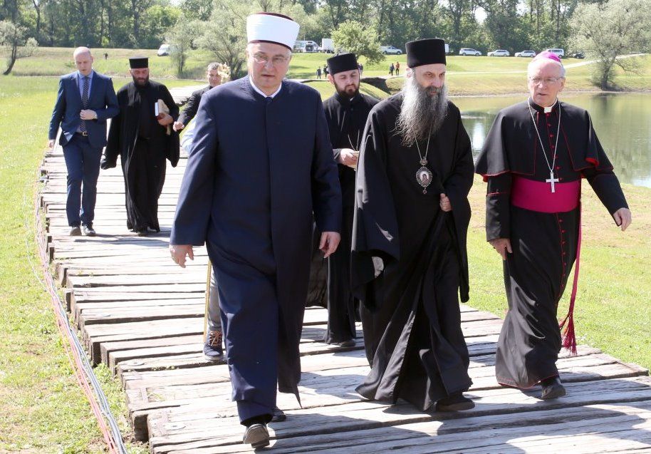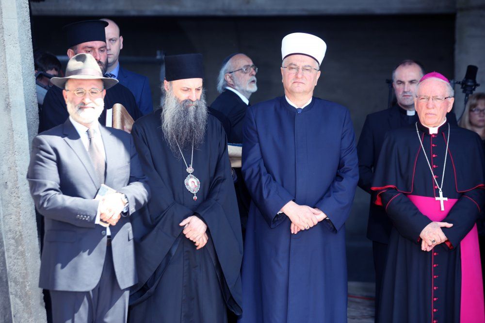 Potom je glavni rabin Kotel Da-Don uputio molitvu „Sjeti se Bože“, „Bože pun milosti“ i Kadiš kojim se veliča Gospoda i njegovu svetost. Molitvu je zatim predvodio mitropolit zagrebačko-ljubljanski Porfirije Perić s pratnjom. Obratio se nazočnima rekavši: „Ovo je mjesto na kojem se ne treba baviti brojkama jer je ovo mjesto na kojem matematika ne važi. Ovo je mjesto na kojem treba spoznati jedinu i najvažniju istinu da svi mi ljudi bez obzira na razlike pripadamo istoj vrsti – prije svega smo čovjek, jedino je to apsolutno. Sva ostala pripadanja i pripadnosti su prolazne. U tom smislu svi smo međusobno braća. Ovo je mjesto na kojem nam se otkriva još jedna istina: linija koja razdvaja dobro i zlo ne proteže se između naroda, država, rasa, linija koja razdvaja dobro od zla nalazi se u srcu svakoga od nas ponaosob, tu se bije bitka i donosi odluka jesmo li ljudi i ostajemo li i dalje pripadnici te vrste koja se zove ljudski rod, ili nažalost jedino kad možemo iskriviti ili anulirati tu svoju pripadnost jest da čineći zlo postanemo ne-ljudi. Ovo je mjesto na kojem nam se otkriva da je jedini istinski put nas ljudi put pokajanja, a to znači mjesto na kojem svi moramo reći oprosti i neka ti je oprošteno; riječi bez kojih bi ljudski život bio besmislen. Ovo je mjesto na kojem se molimo nevino stradalim žrtvama i svim žrtvama gdje i kome god pripadale jer je svaka nevina žrtva zapisana u Božju knjigu života i tako je postala svetitelj Božji. Moleći se njima molimo se da naše srce bude prostor prisustva Božje ljubavi kroz koju i svi jedni druge prepoznajemo i susrećemo kao svoju braću. Neka je vječni pokoj svima ovdje stradalima kao i svim nevino stradalim žrtvama u cijelom svijetu,“ zaključio je mitropolit Porfirije.