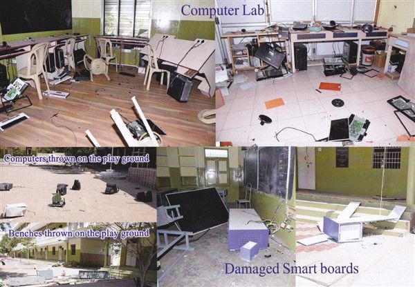 Kako piše Asia News cijela zgrada škole je devastirana, uključujući učionice, dvorane i kapelu. Nasilnici su razbili glavu kipu svete Terezije od Djeteta Isusa, zaštitnice škole, i uništili oltar.