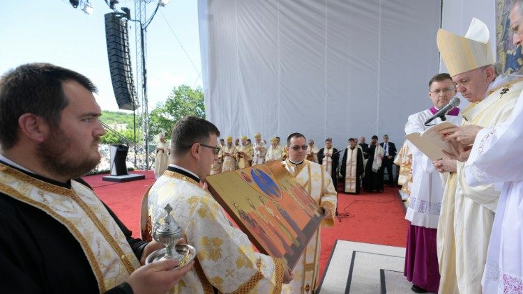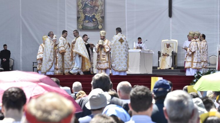 Papa Franjo je posljednjeg dana boravka u Rumunjskoj u nedjelju 2. lipnja u nazočnosti oko osamdeset tisuća vjernika na prostranom Polju slobode u istočnom predjelu grada Blaja zajedno s rumunjskim grkokatoličkim biskupima služio božansku liturgiju tijekom koje je proglasio blaženima sedmoricu grkokatoličkih biskupa, mučenika komunističkog režima.