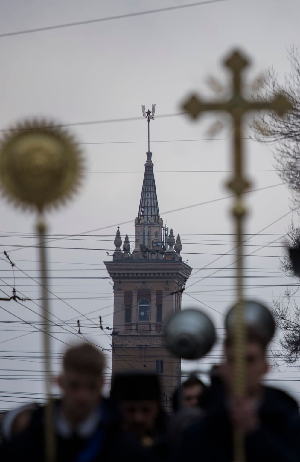 Nakon toga su se predstavnici redovničkih zajednica u svečanoj procesiji u molitvi zaputili ulicama Zaporižja od grkokatoličke crkve Sv. Vladimira Velikog do rimokatoličkog svetišta Boga Milosrdnog Oca. Tamo se hodočasnicima pozdravnim govorom obratio biskup Zaporiško-kharkivske biskupije Rimokatoličke Crkve u Ukrajini Jan Sobilo. “Ovo je zaista povijesni događaj. Posebna je vaša molitva u Zaporižju, na zemlji gdje dugih godina prisutnost Katoličke Crkve nije bila priznata. Svaki vaš potez ovdje je pobjeda nad militantnim ateizmom koji ovdje prevladava dugi niz godina. Mračne sile prosvjeduju protiv mira u Ukrajini i Europi. Daj Bože da naša molitva prosvijetli velikane ovoga svijeta“, rekao je biskup Sobilo.