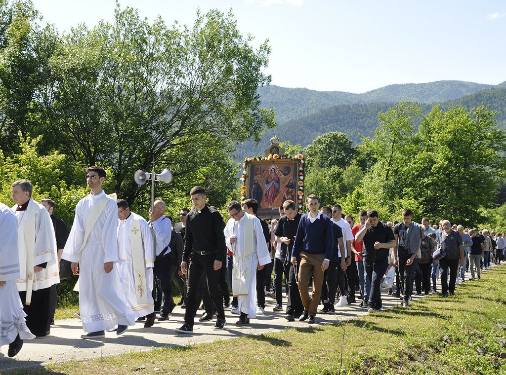 JUBILARNO SLAVLJE Proslavljen 50. Dan mladih Vrhbosanske nadbiskupije 50. Dan mladih Vrhbosanske nadbiskupije proslavljen je 29. svibnja u župi Komušina i na brdu Kondžilo, gdje je središnju euharistiju predslavio vrhbosanski nadbiskup koadjutor i vojni apostolski upravitelj u BiH Tomo Vukšić, objavila je Nedjelja. IKA Podijeli: Foto: Nedjelja.ba Kao i prethodnih godina, organizatori susreta bili su Nadbiskupijski centar za pastoral mladih Ivan Pavao II. i Župa Uznesenja Blažene Djevice Marije u Komušini. Geslo ovogodišnjeg susreta bilo je Ustani. Postavljam te za svjedoka onoga što si vidio (Dj 26,16). Obilježavanje Dana mladih Vrhbosanske nadbiskupije započelo je u petak 28. svibnja misom uočnicom te emisijom i prigodnim klanjanjem Presvetom Oltarskom Sakramentu u večernjim satima u izravnom prijenosu u organizaciji Medijskog centra Vrhbosanske nadbiskupije (MCVN), to jest Katoličkog tjednika. U subotu 29. svibnja, skromnije nego prethodnih godina, bez organiziranih dolazaka mladih, od ranih jutarnjih sati pristizali su hodočasnici u osobnom aranžmanu koji su se, prema višegodišnjoj tradiciji, najprije okupili pored vanjskog oltara iza župne crkve gdje je bila prigoda za slavlje sakramenta ispovijedi. U odnosu na ranije godine, program proslave jubilarnog Dana mladih započeo je nešto ranije, molitvom pred slikom Gospe Kondžilske, koju je kod vanjske kapelice predmolio mons. Vukšić. Potom je krenula procesija na brdo Kondžilo, udaljeno nekoliko kilometara. Cijelim putem pjevane su marijanske pjesme i moljena krunica. Povijesne crtice Dolaskom na uzvišenje na kojem se nalazi nova kapelica i moderni vanjski oltar, započelo je slavlje euharistije. Uz vrhbosanskog nadbiskupa koadjutora suslavili su vrhbosanski nadbiskup kardinal Vinko Puljić, generalni vikar Vrhbosanske nadbiskupije mons. Slađan Ćosić, župnik u Komušini i čuvar Gospina svetišta preč. Boris Salapić, ravnatelj Nadbiskupijskog centra za pastoral mladih „Ivan Pavao II.“ vlč. Šimo Maršić te još desetak svećenika. Okupljenima se na početku obratio i poželio im dobrodošlicu čuvar svetišta preč. Salapić koji je pozdravio nadbiskupe, svećenike, redovnike i redovnice, djelatnike NCM-a, ostale vjernike te sve koji su misu pratili na portalu Medijskog centra Vrhbosanske nadbiskupije Nedjelja.ba, Radija Posavine te Radija Marije BiH. Potom je progovorio o povijesti susreta mladih u Komušini koji je započeo 16. svibnja 1971. kao priprema za Međunarodni marijanski kongres koji se iste godine održao u Mariji Bistrici. Spomenuo se i župnika koji su sljedećih godina i desetljeća organizirali susrete mladih: preč. Zvonimira Petrovića, dr. Pere Pranjića, vlč. Žarka Vujice te mons. Ante Meštrovića. Spomenuo je i nadbiskupa Marka Jozinovića koji je odlučio da se u Komušini slavi svake godine u svibnju slavi Dan mladih. Progovorio je i o ratnim te izbjegličkim godinama, molitvi mladih na grobovima branitelja Komušine 1996. u Novom Šeheru te povratku slavlja na Kondžilo. Kako naći trajnu sreću? Mons. Vukšić je na početku mise pozdravio nazočne i napomenuo da se ona prikazuje u čast Marije Majke Nade. „Ljudima ovoga svijeta često mnogo nedostaje, ali najljepša vrednota koja može postojati je nada“, rekao je nadbiskup koadjutor. Napomenuo je da se nada „istiskuje“ iz ljudskih života te planski ili spletom različitih događaja nada često umire u srcima. Potom je zamolio Mariju da svima koji posrću u napasti da izgube nadu izmoli milost kako bi uvijek mogli uspravno ići za Isusom. Na početku homilije nadbiskup Vukšić istaknuo je da se u Komušini, starom zavjetnom mjestu, vjernici više stoljeća rado okupljaju i iskazuju svoje štovanje Majci Božjoj. „Kroz to vrijeme ovo je hodočasničko mjesto vidjelo na stotine tisuća pobožnih vjernika i, zajedno s njima, brojne njihove duhovnike svećenike, biskupe, redovnike i redovnice. Čulo je ono i saslušalo sve njihove molitve, preporuke, potrebe i uzdisaje. Bilo je ono svjedok i njihovih radosti i zavjeta, ali i žalosti i strepnja. Pamti ono i njihova stradanja i progone“, rekao je. Naglasio je da to mjesto „najviše pamti vjeru hodočasnika koja ih je ovdje dovodila, njihovu veliku pobožnost i molitvu“. Potom je posvijestio dva razloga za okupljanje na posljednju subotu u svibnju. „Prvo, na završetku smo mjeseca svibnja, koji je tradicionalno posvećen Blaženoj Djevici Mariji. (…) i drugo, ovaj naš molitveni sabor događa se u povodu 50. obljetnice Dana mladih Vrhbosanske nadbiskupije“, naglasio je. Izravno se obrativši mladeži napomenuo je različite molitvene nakane koje ljudi prikazuju u kondžilskom svetištu. Između tih zaziva nadbiskup Vukšić istaknuo je molitvu za završavanje pandemije koronavirusne bolesti te da lijek protiv te pošasti bude dostupan svakome. Promišljajući o mladima zaželio im je uspješan završetak školske godine te sretno polaganje ispita. „Molimo također da svatko od vas nađe pravu sreću i trajnu ljubav svoga života bilo sklapanjem kršćanske ženidbe bilo izborom duhovnoga zvanja u svećeničkom ili redovničkom zvanju“, dodao je. Potaknuo je ih je da u svim životnim kušnjama budu nadahnuti primjerom Blažene Djevice Marije, koja je Riječ Božju slušala i ono što se događalo s Isusom pohranjivala i prebirala u svom srcu. Osvrnuo se i na misna čitanjima u kojima je Gospa svojim pronicljivim okom zapazila da se mladi par zaručnika našao u nevolji jer im je ponestalo vina za vrijeme svečanosti svadbe te je Isus, na majčinu zamolbu, riješio veliku nelagodu. Nadbiskup je naglasio Gospinu rečenicu koja za svakoga vjernika ima trajnu vrijednost kao pravilo i pouka kako se ponašati prema Riječi Božjoj: „Što god vam rekne, učinite!“ (Iv 2,5). „Isto to ponavlja Gospa danas vama. Za nas to je vrlo važna pouka i trebala bi biti jedno od osnovnih pravila života“, naglasio je mons. Vukšić te je dodao da je kršćanst