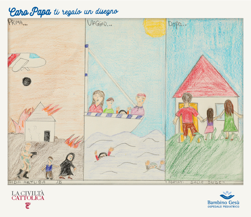 Stotinu je crteža koje je ovjerovilo privatno tajništvo Svetoga Oca. Papa Franjo u svakom kutku svijeta, tijekom svojih putovanjâ i susretâ, od djece prima na dar njihove crteže. Tako je odlučeno povjeriti ih časopisu „La Civiltà Cattolica“, sa željom da ih se pretvori u dar za drugu djecu, i da postanu znak solidarnosti. „Papa je tako dobar, ovaj je crtež dar za njega“ – posveta je 5-godišnje Anne Marie, napisana na crtežu koji je poslala papi Franji.