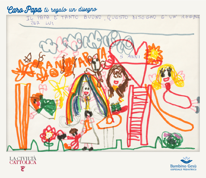 Djeca crtaju svijet i daruju ga Papi – kazao je p. Antonio Spadaro, ravnatelj časopisa „La Civiltà Cattolica“ – prikazujući osjećajan svijet, koji osjećaje i razum ne razdvaja kirurškim nožićem. Kako je podsjetio papa Franjo, djeca se smiješe spontano, i plaču spontano, za razliku od odraslih. Možda je najzahtjevnija poruka koju dobivamo uzimajući u ruke ove dragocjene crteže ta da nas djeca mogu ponovno naučiti smiješiti se i plakati – primijetio je p. Spadaro.
